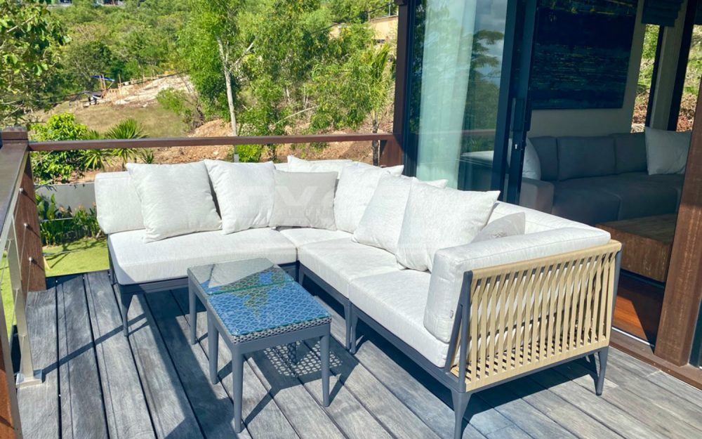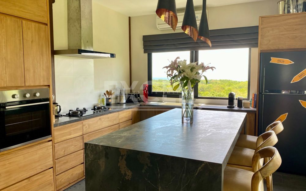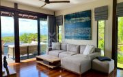 This stunning 200 sqm, two-story modern villa offers spacious luxury living with panoramic ocean views. Step inside this all-wood and glass architectural masterpiece with expansive floor-to-ceiling windows and sliding doors that seamlessly blend the indoors with the outdoors.