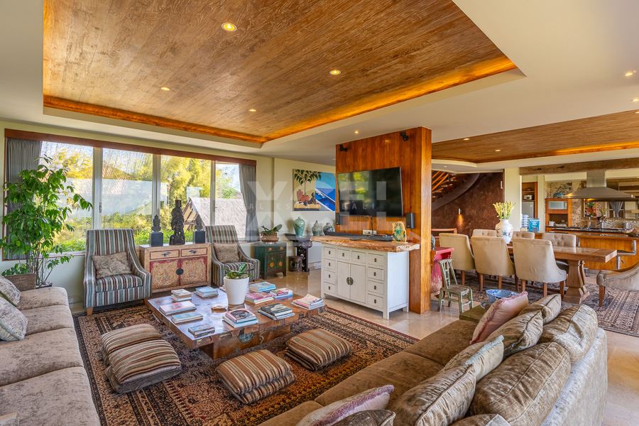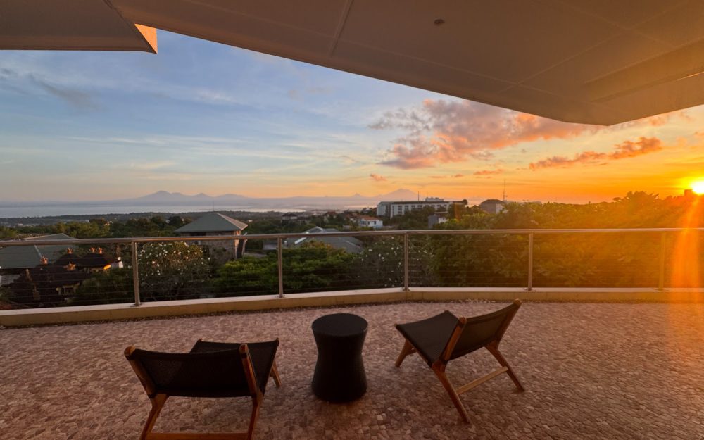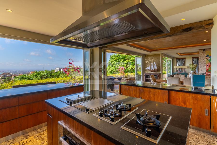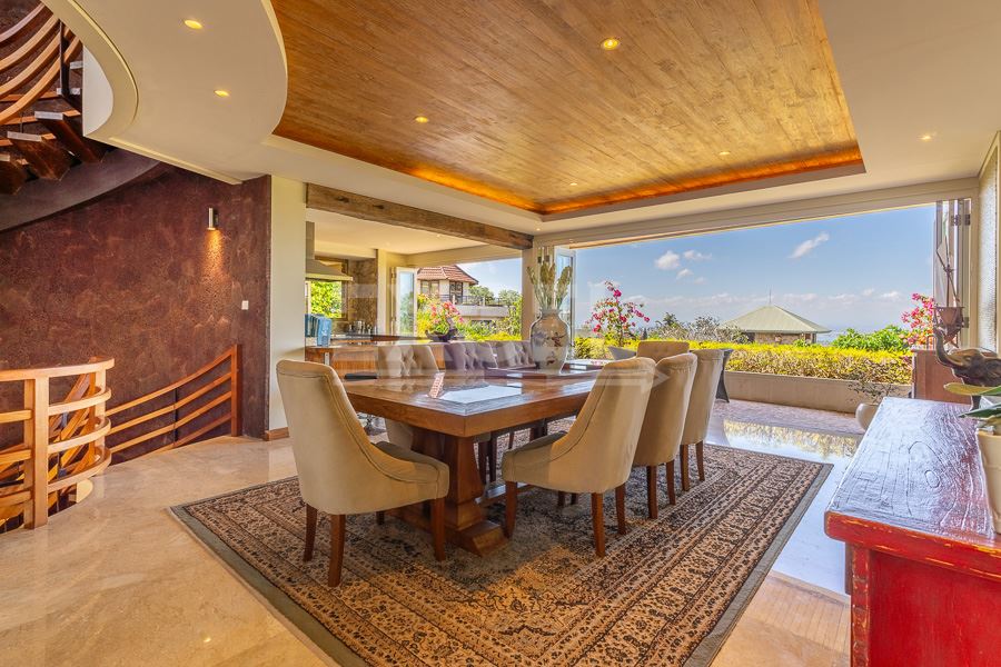 The property boasts picturesque, panoramic North to North East facing views which takes in Jimbaran Bay with the mountain ranges serving as a dramatic back drop and the new Garuda Vishnu statue close by to the East.