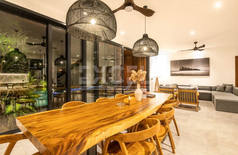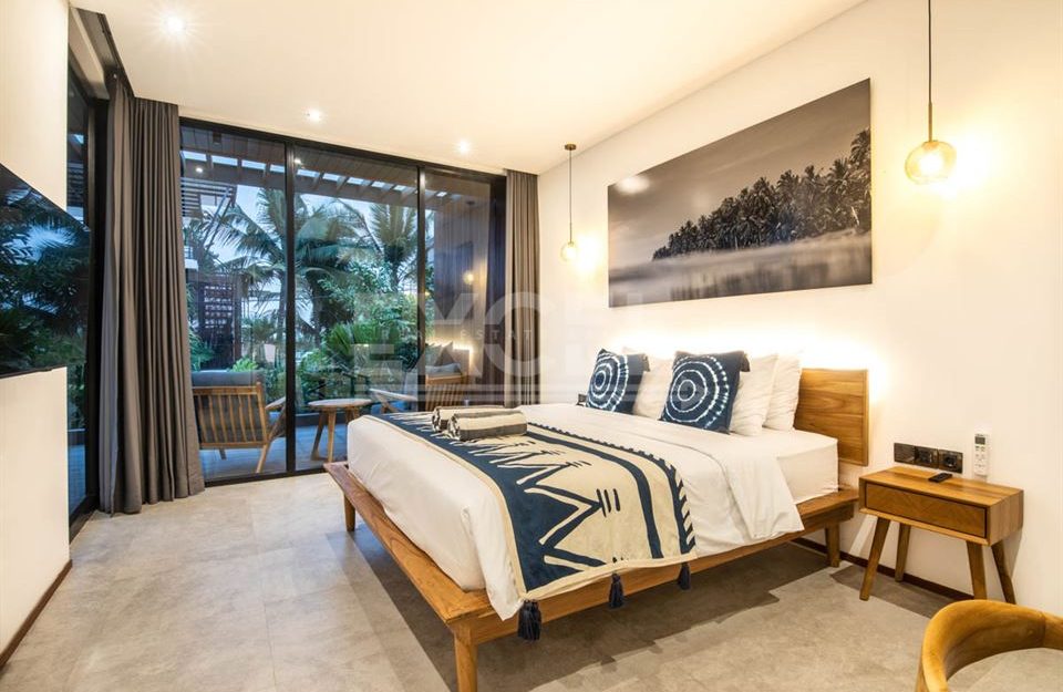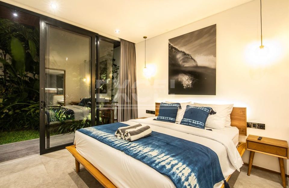 This stylish 4 bedroom villa is just 200m from the beach and it comes with a leasehold title until 2050 with a fixed extension in place. An exquisite property with ensuite bathrooms that blends modern and ethnic design in the trendy neighbourhood Pererenan. Perfect for families or groups of friends seeking a peaceful retreat for their own residence or to rent out to generate some good income.