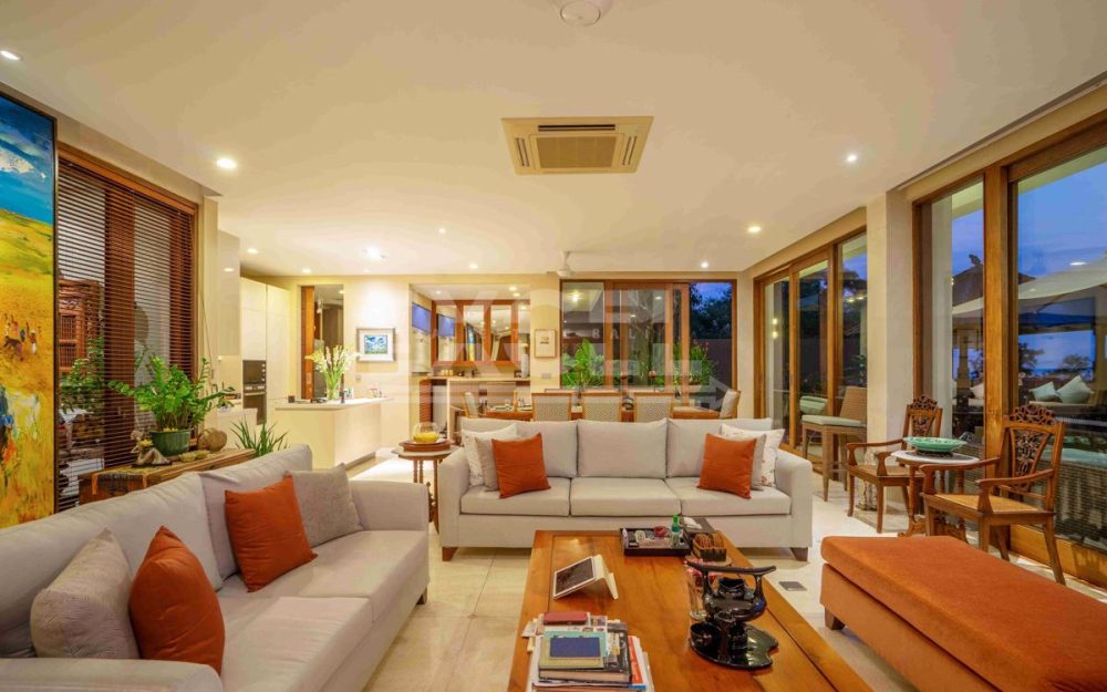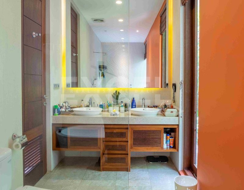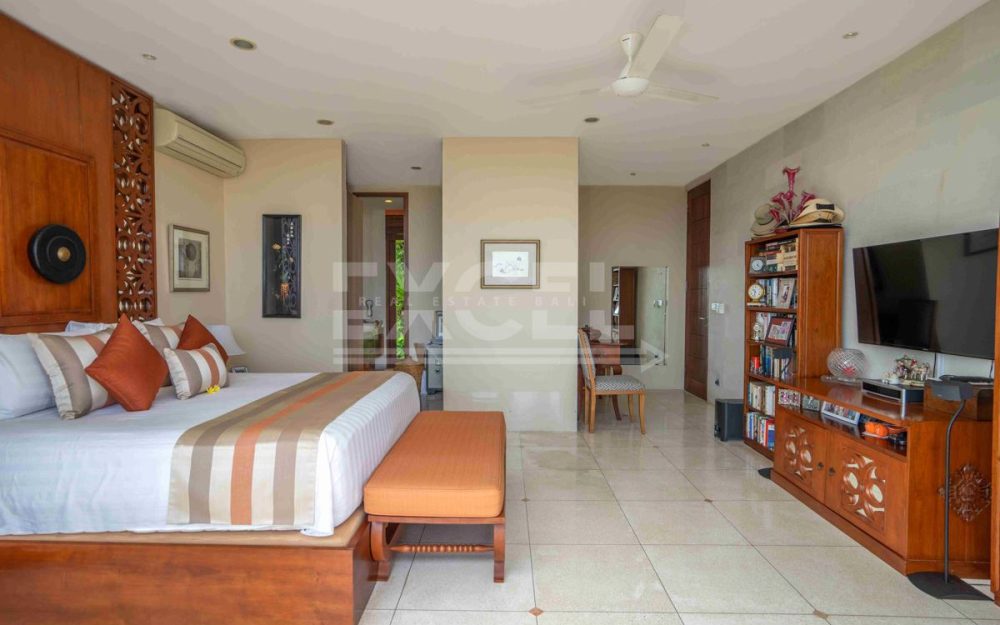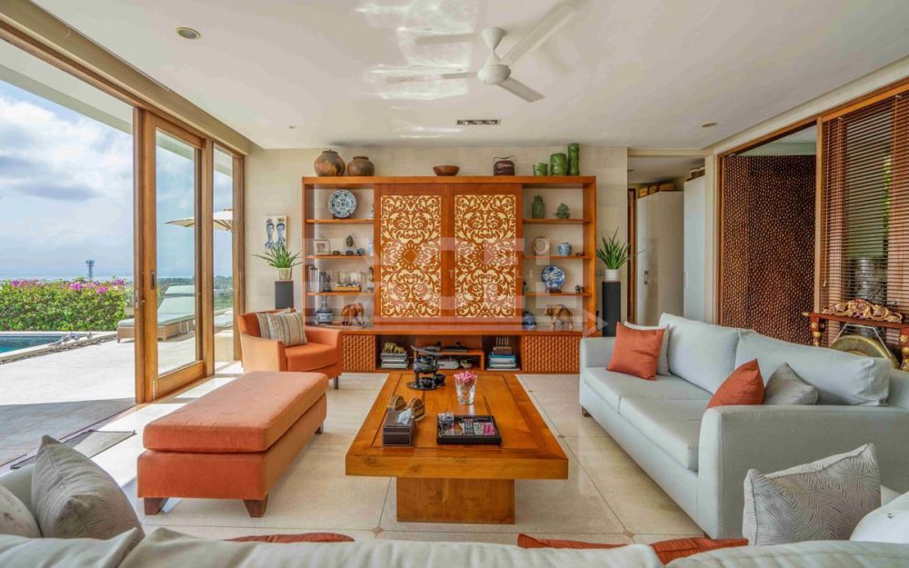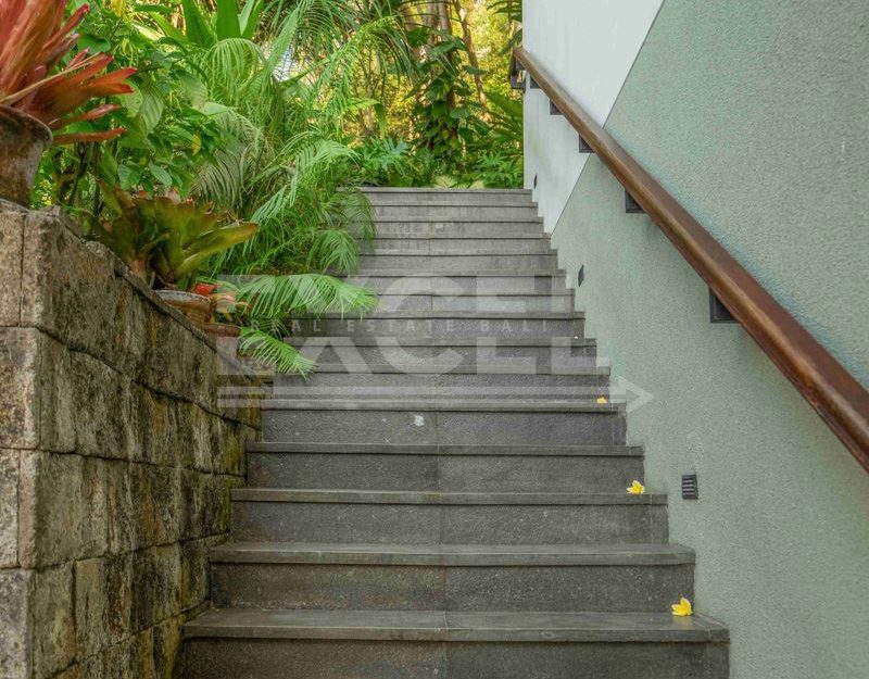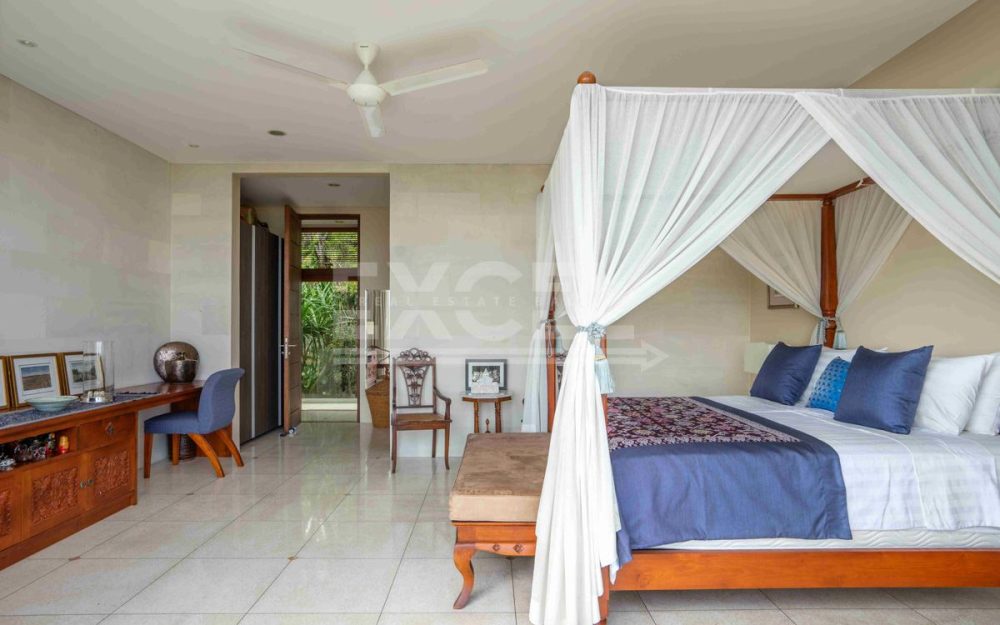 The Villa is supported by a separate 3-bedroom staff quarters, a tank-room for water storage and genset below the swimming pool, a two-car garage with roller doors, and a large parking area. The Villa has been beautifully furnished and fitted throughout by a leading Bali interior designer, and is available fully furnished.