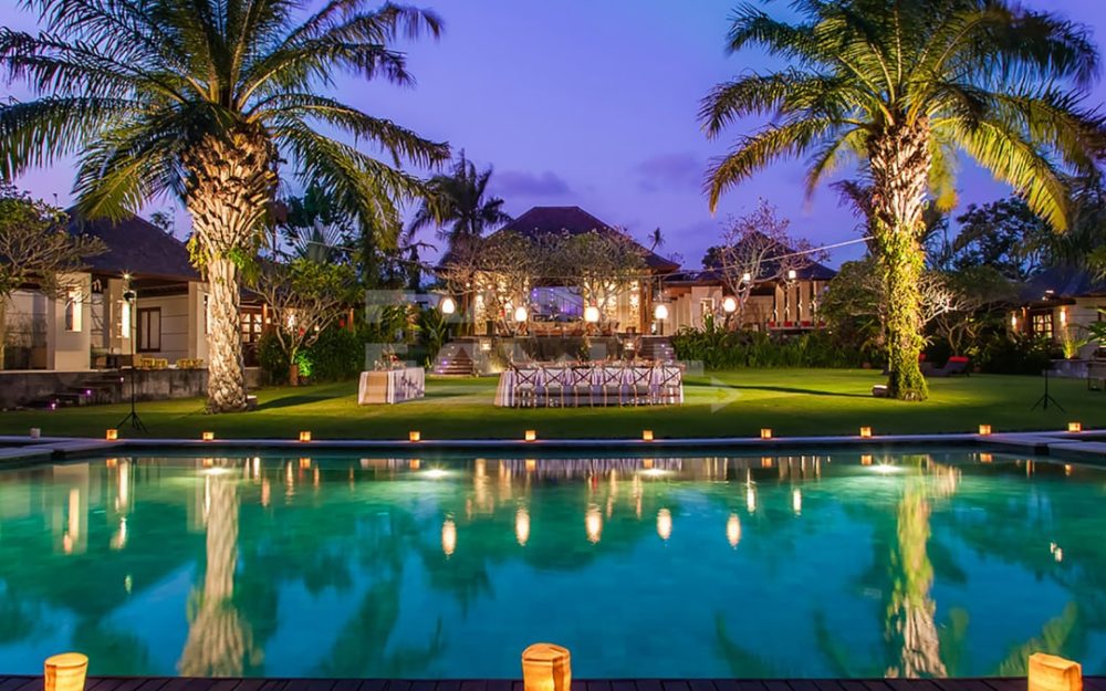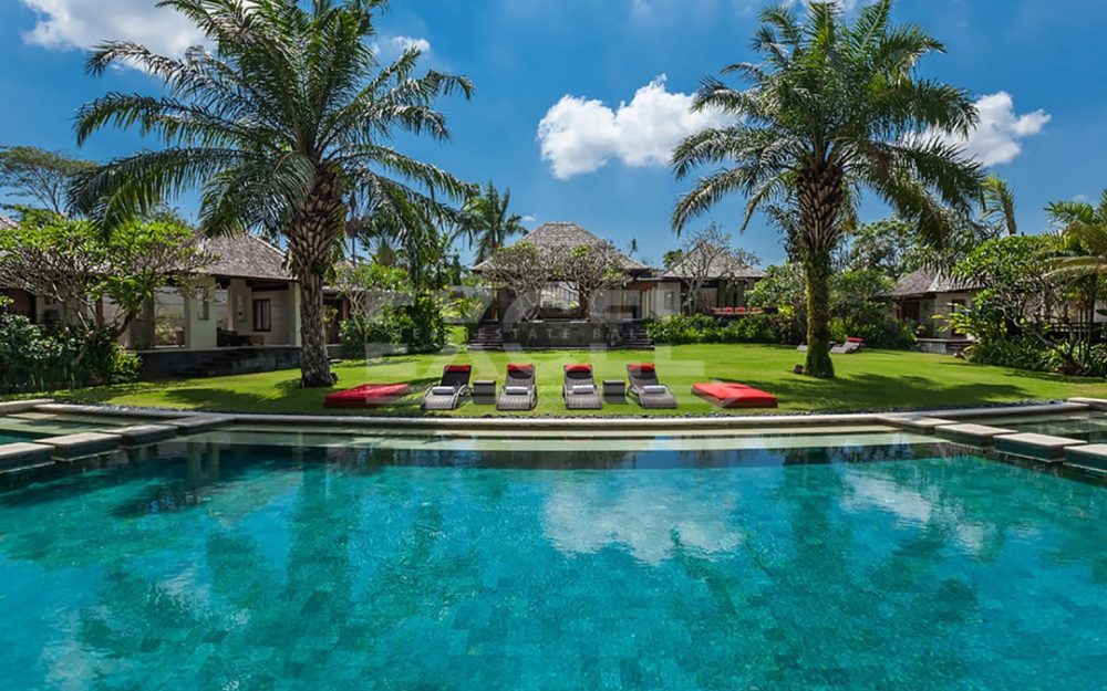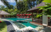 This stunning six-bedroom property in the heart of Berawa / Canggu, less than two kilometres from the beach is designed for families, with a contemporary take on traditional Bali-style living. The villa offers multiple living areas and spacious pavilions for each of the six bedroom suites spread around the extensive 5690m2 grounds. Facilities include a 21-metre swimming pool, media room, and in an adjacent area designated for sports an air-conditioned gym, floodlit tennis court, and mini football pitch.