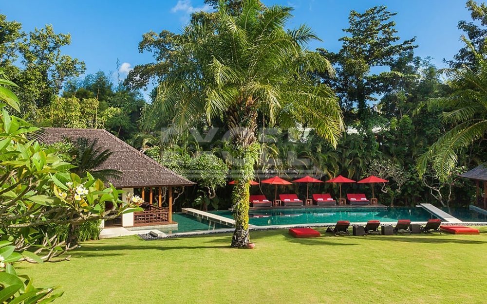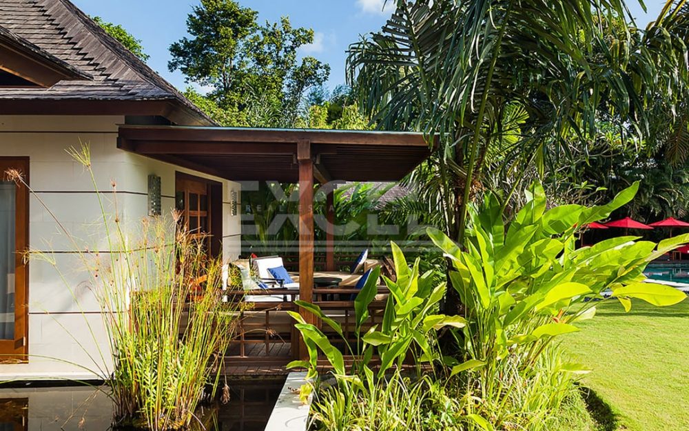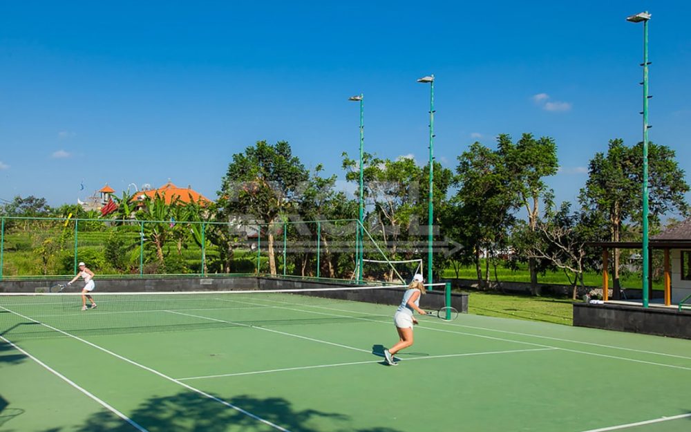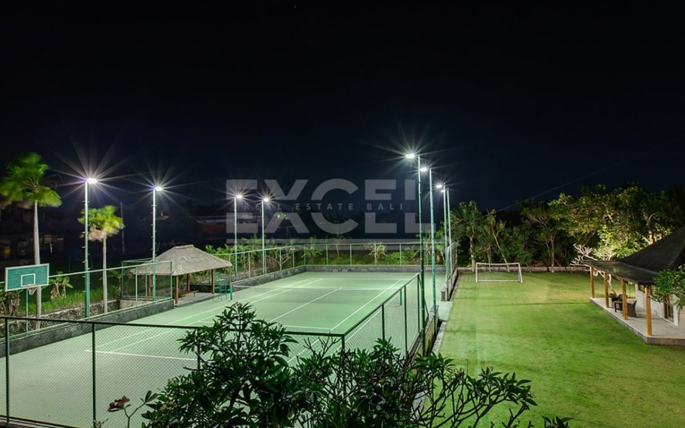 A large area devoted to sports lies to one side of the villa estate, bordered rice fields. The floodlit tennis court— or use as a basketball pitch, along with an air-conditioned pavilion houses a gym.