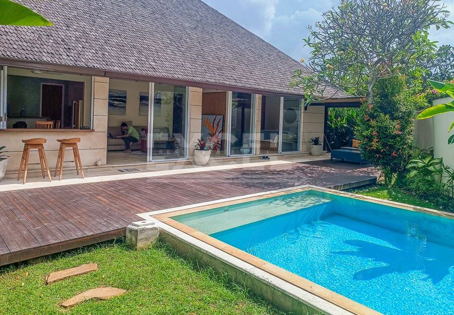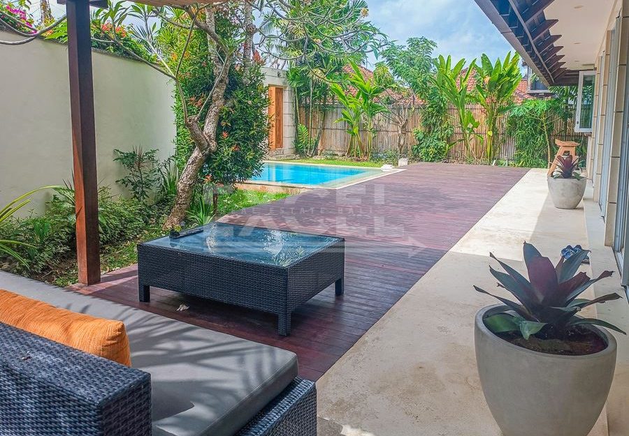 Spacious outdoor terrace, equipped with shaded seating, perfect for the small family to live in. Umalas is very trendy and quite place to live, yet is close to get around to Seminyak and Canggu as well Denpasar.