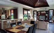 This villa has 4 bedrooms, 3 bathroom, living room, dining, kitchen, 2 toilet, 2 storage, 1 staff room, lounge, swimming pool, out door shower, gazebo, garage, fish pond and fully furnish