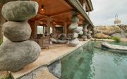 First floor (120 sqm): Sauna, relaxation and event area, sports area, bathroom, and access to the pool designed in a natural style.