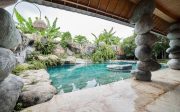 This eco-friendly Villa features a designer swimming pool in a oval real lagoon form 6x10m as well as a sauna and is surrounded by rice fields and enjoys views of Mount Agung and Batur.