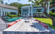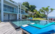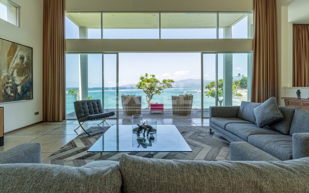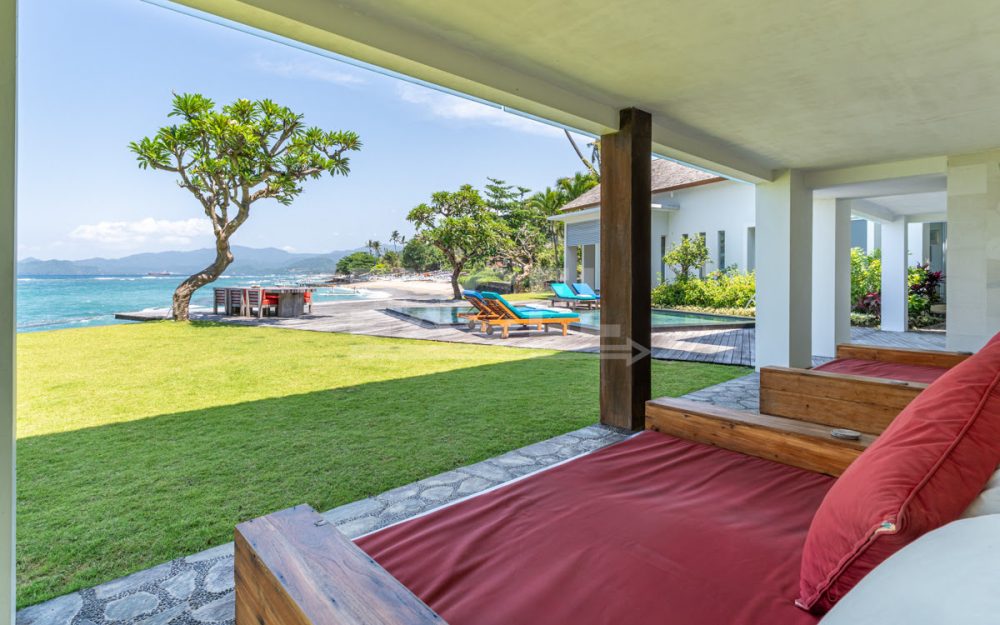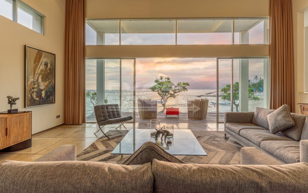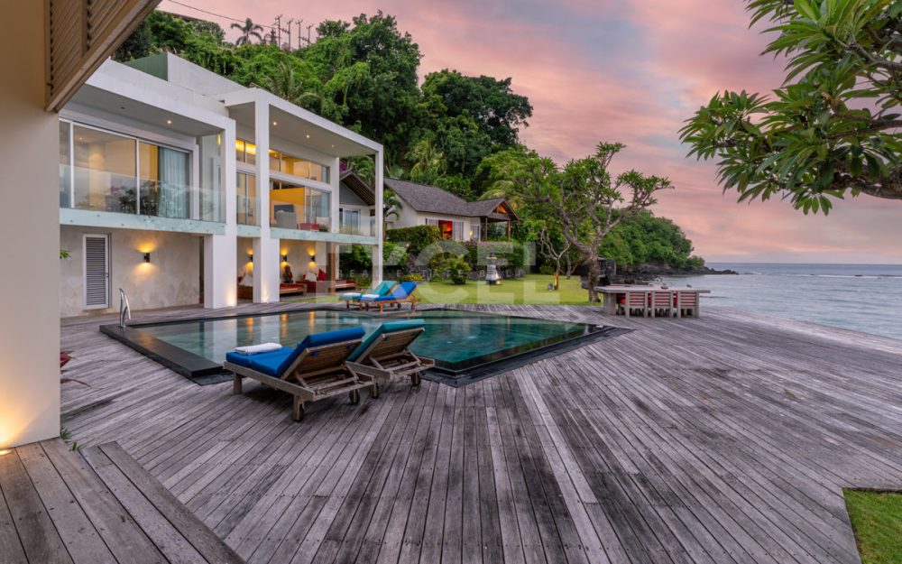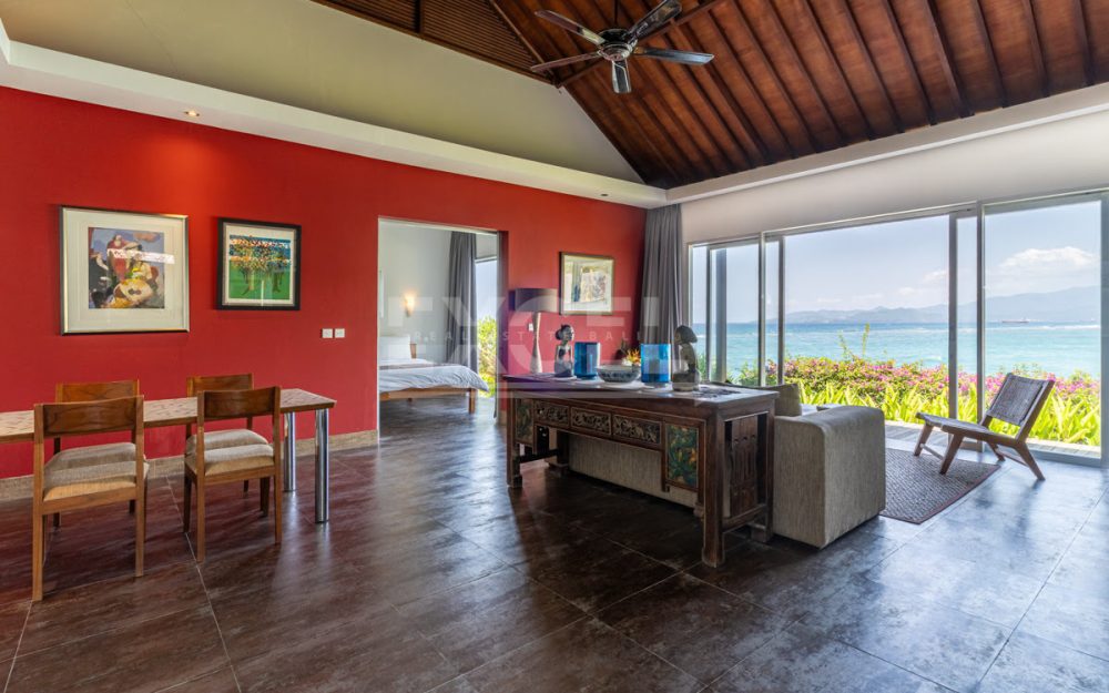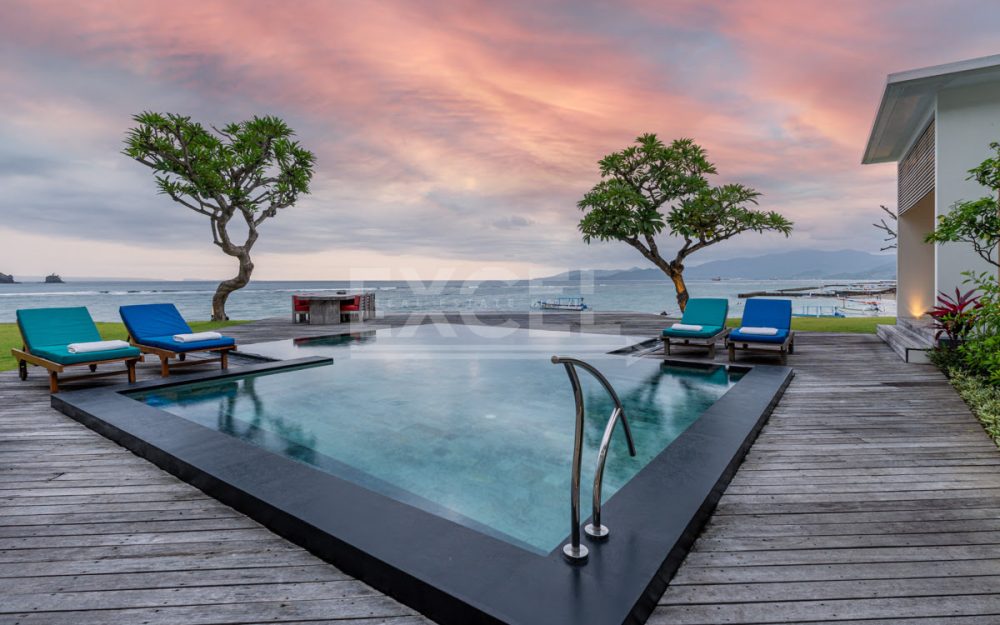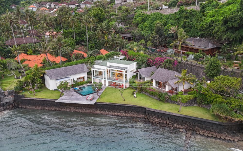 This unique must see designer beachfront villa, represents one the finest and ‘Gem’ properties within scenic and laid back seaside town of Candi Dasa. Candi Dasa is located in the tranquil and breathtaking area of east of Bali, often called the island’s “hidden gem”. With a panoramic coastline, clean beaches, safe swimming conditions, high palm trees and then bordered with the huge lush mountains overlooking the seaside town, Candi Dasa proves to be one of the best and satisfying areas on the ‘Island of the gods”