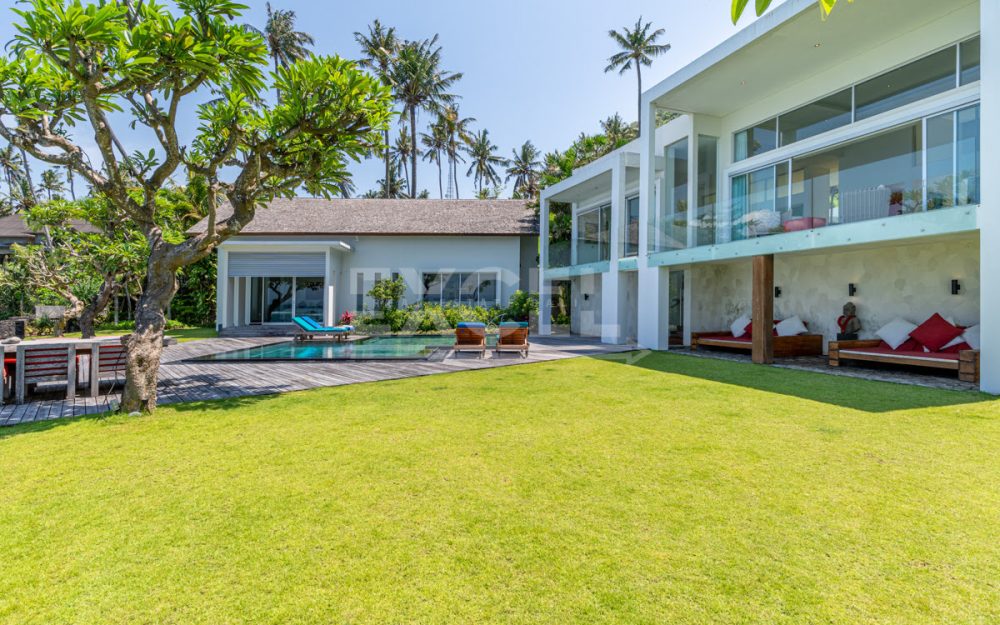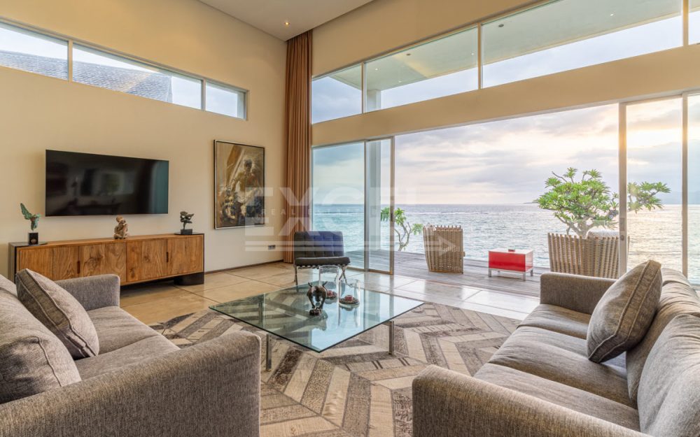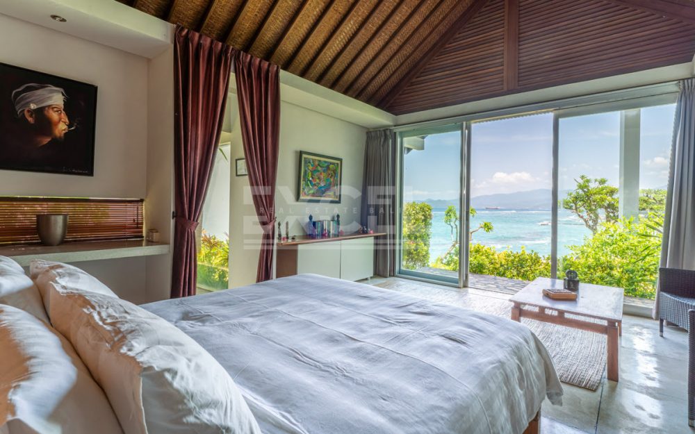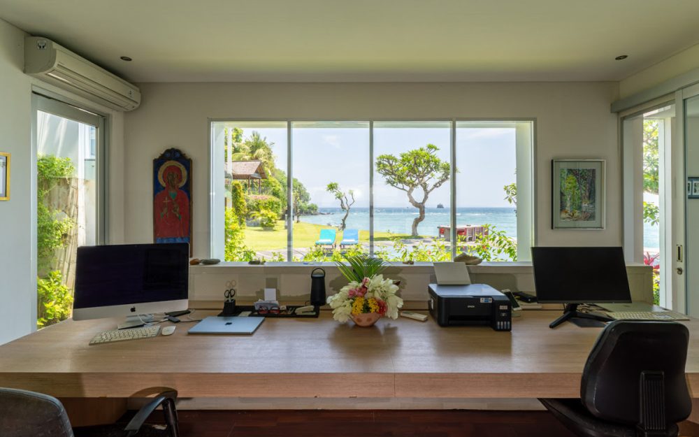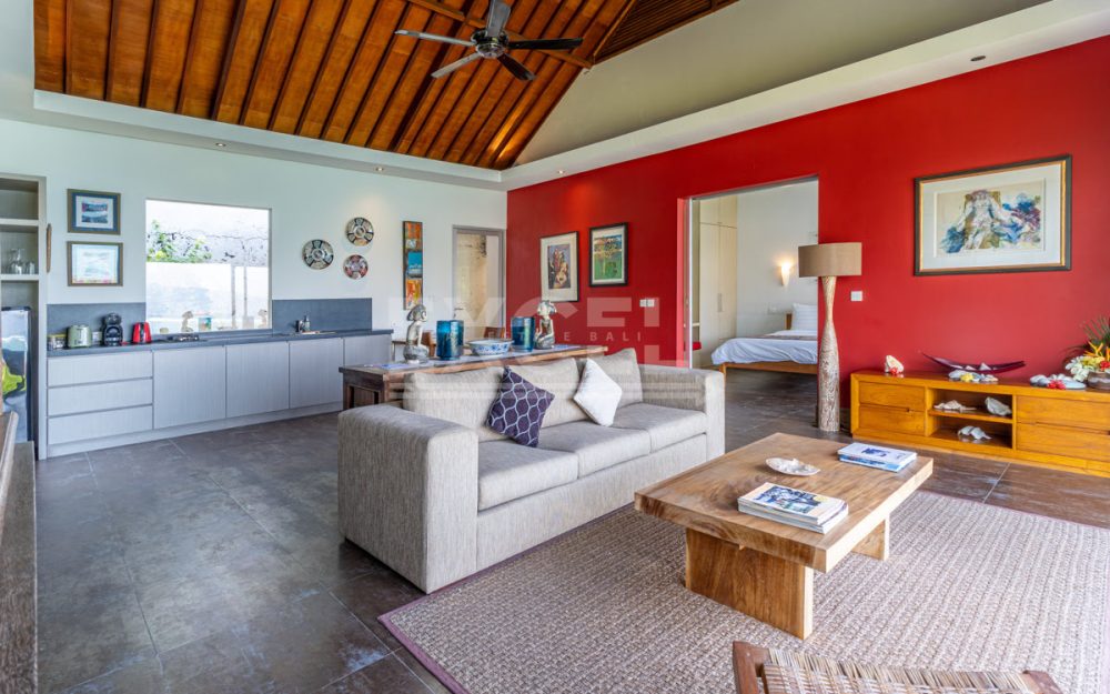 Step into this luxurious villa and be enchanted by the breathtaking views of the ocean, the Candi Dasa coastline and the island of Nusa Penida in the distance. The villa is an architectural gem built in 2008 and has since become an icon, featuring in the book “21st Century Beach Houses.” This modern designer villa offers a spacious living room and dining room, both with panoramic ocean views. The kitchen is fully equipped, and the master bedroom and separate office overlooks the tropical garden and pool, also with impressive ocean views. Direct private beach access is provided from the garden area of this unique property.