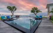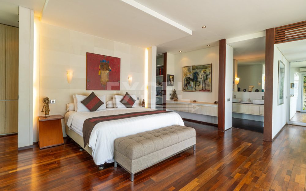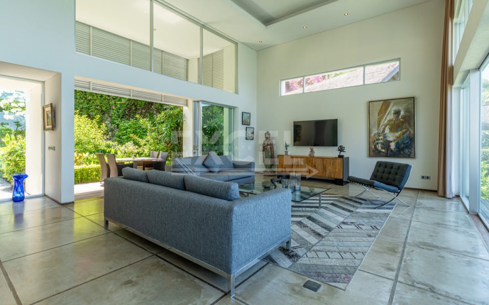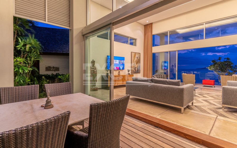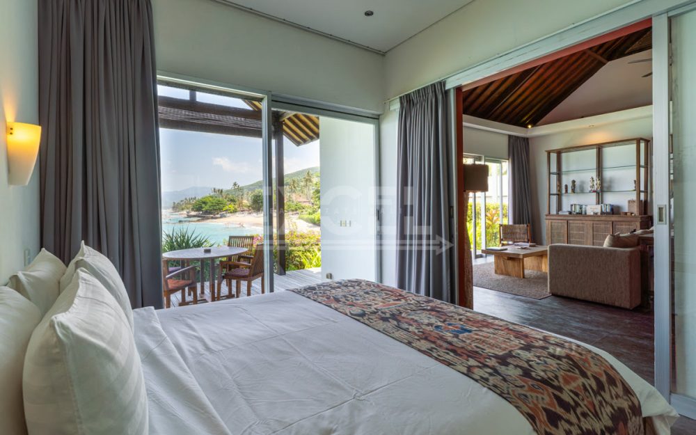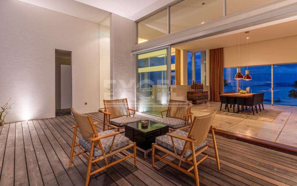 Step into this luxurious villa and be enchanted by the breathtaking views of the ocean, the Candi Dasa coastline and the island of Nusa Penida in the distance. The villa is an architectural gem built in 2008 and has since become an icon, featuring in the book “21st Century Beach Houses.” This modern designer villa offers a spacious living room and dining room, both with panoramic ocean views. The kitchen is fully equipped, and the master bedroom and separate office overlooks the tropical garden and pool, also with impressive ocean views. Direct private beach access is provided from the garden area of this unique property.