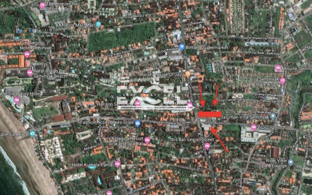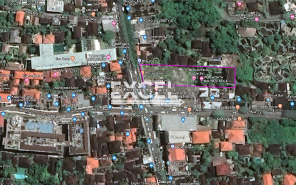 This 23.25 are block of land has a highly describe main road frontage in the commercial area of Seminyak. Opposite The Heaven on Jl. Raya Seminyak. The block is just 3 minutes to Double Six beach.