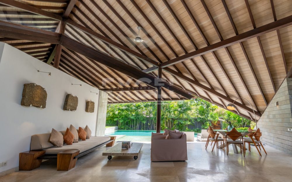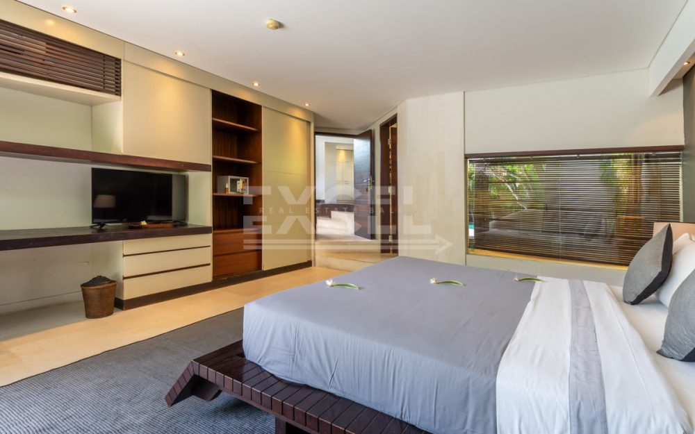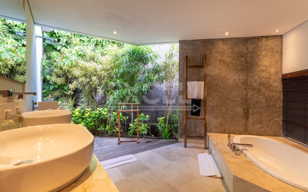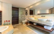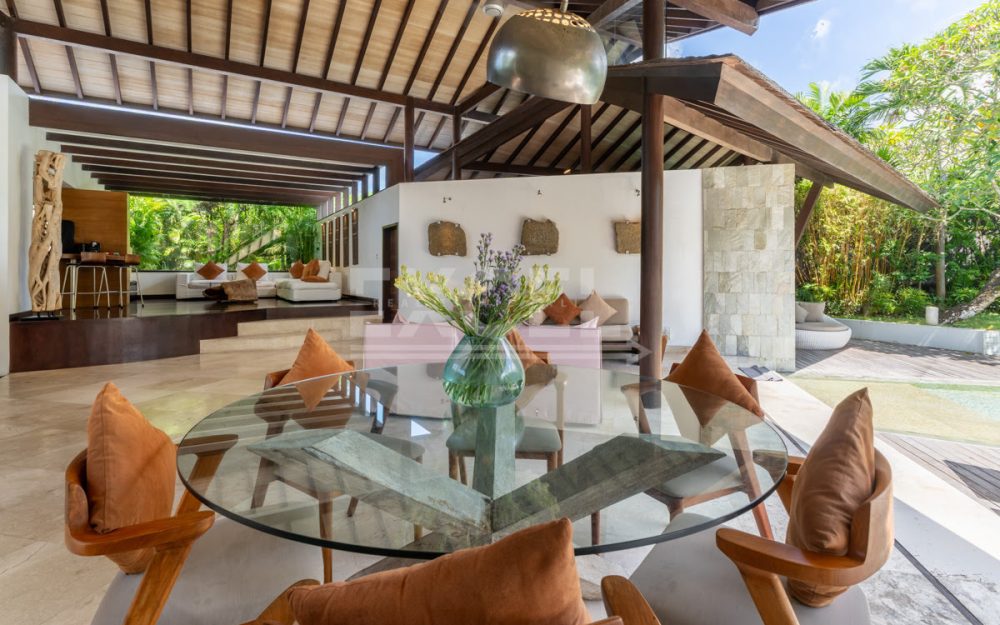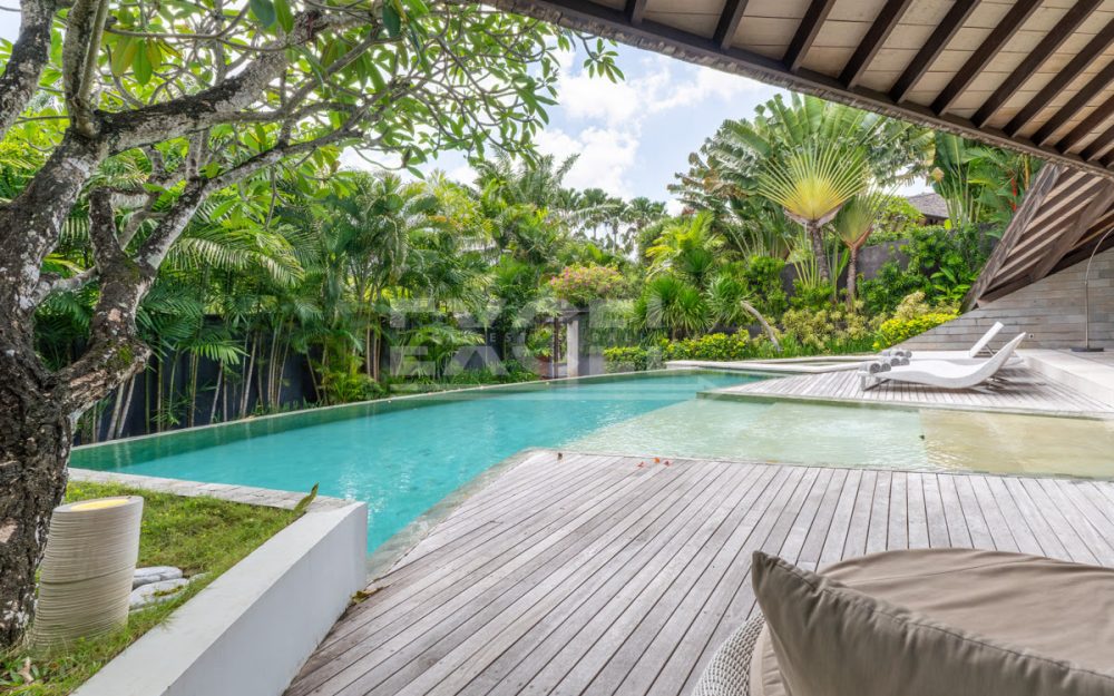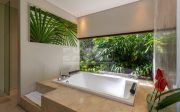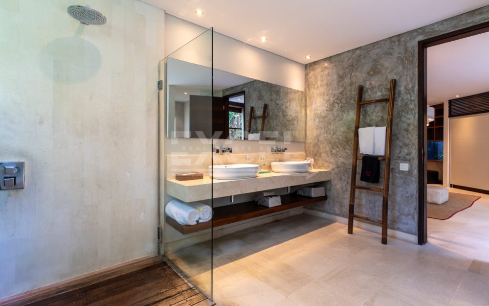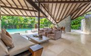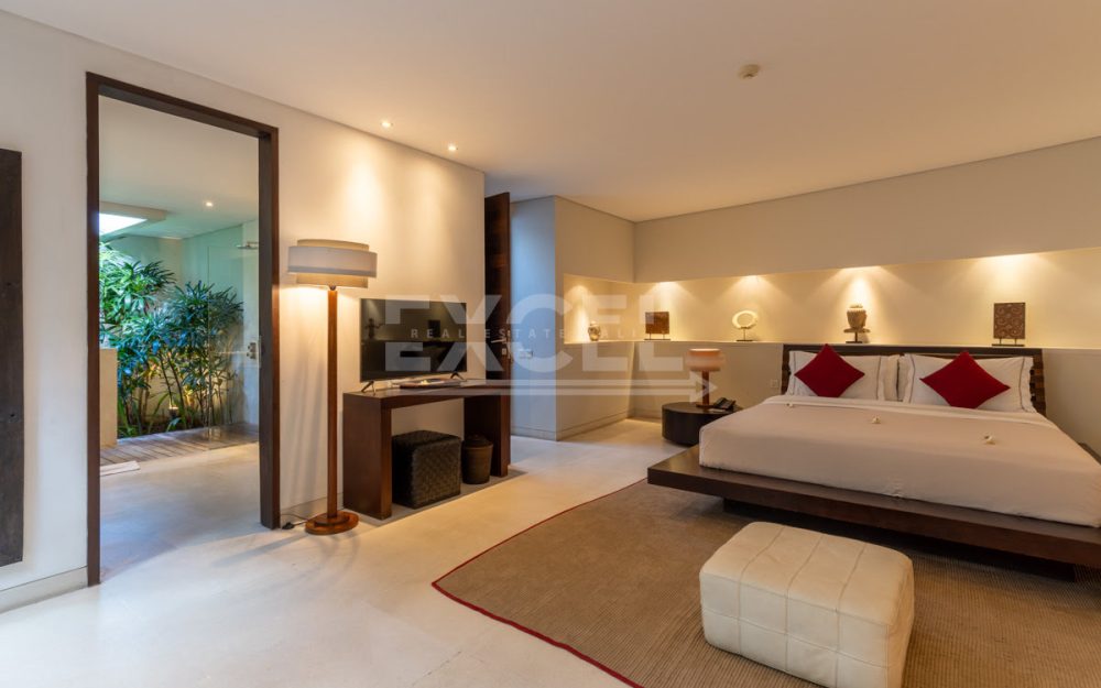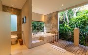 The design intelligence so noticeable in the villa creates an unprecedented sense of privacy for all three king-sized bedrooms, which lie off the main living area behind statement walls of stone or via well-screened entrances set at an angle or on different levels. The spacious master bedroom enjoys a glamorous bathroom with large bathtub, shower, double basins and a private garden. The guest bedrooms are just as enticing and secluded, with equally gorgeous indoor/outdoor bathrooms, many also featuring their own private garden areas.