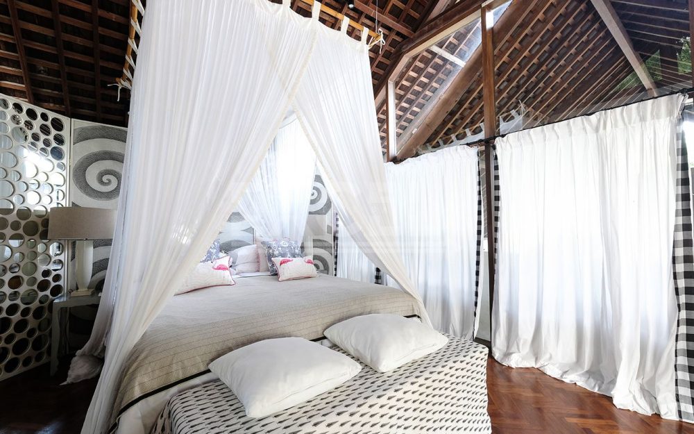 - 40m2 bedroom with a beautiful ensuite bathroom decorated with traditional Balinese stone carvings