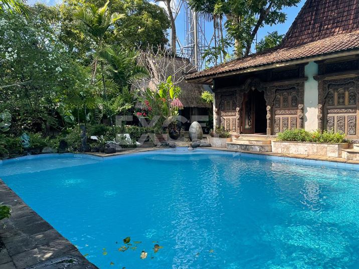 This tropical property serves as an idyllic retreat located on the border of Legian and Seminyak. Convenient location is just 7 minute away from the beach and less than half hour to the airport. Situated on a 24.3 acre land, this villa showcasess combination of unique joglo designs. featuring teak structure sourced directly from Java and meticulously assembled piece by piece.