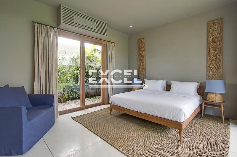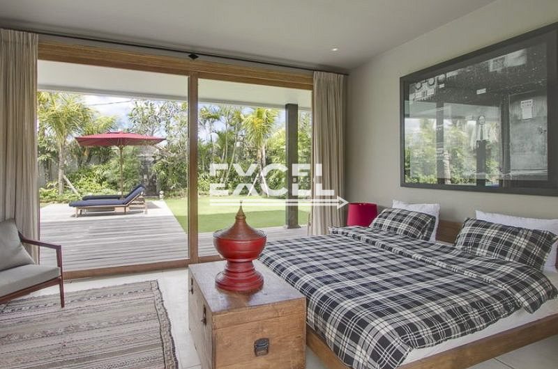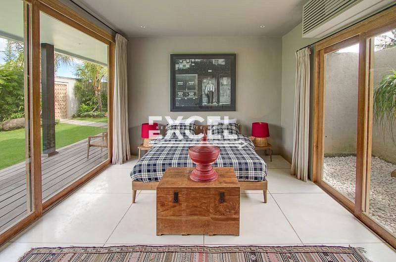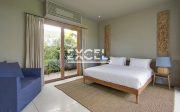 Queen size bed, en-suite bathroom (outdoor shower), air conditioner and safe, combined nicely by wide sliding glass door with direct access to swimming pool and open air