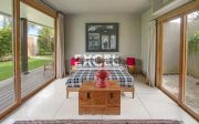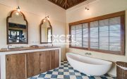 Modern Balinese design, intricate details crafted by local artisans from every angle and starts with a stylish oversized gate entrance. The villa’s ground floor houses the living, dining and kitchen areas which overlook the swimming pool and gardens and can be left open to the tropical air or closed off for air-conditioned comfort.