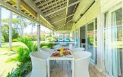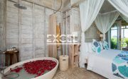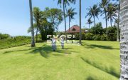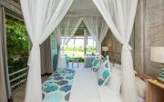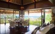 The villa has magnificent tropical gardens with soft rolling lawns dotted with fragrant frangipanis and swaying coconut palms hug the landscape’s natural contours, while an 18-metre infinity swimming pool blends seamlessly with the ocean panoramic views.
