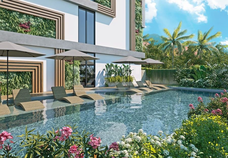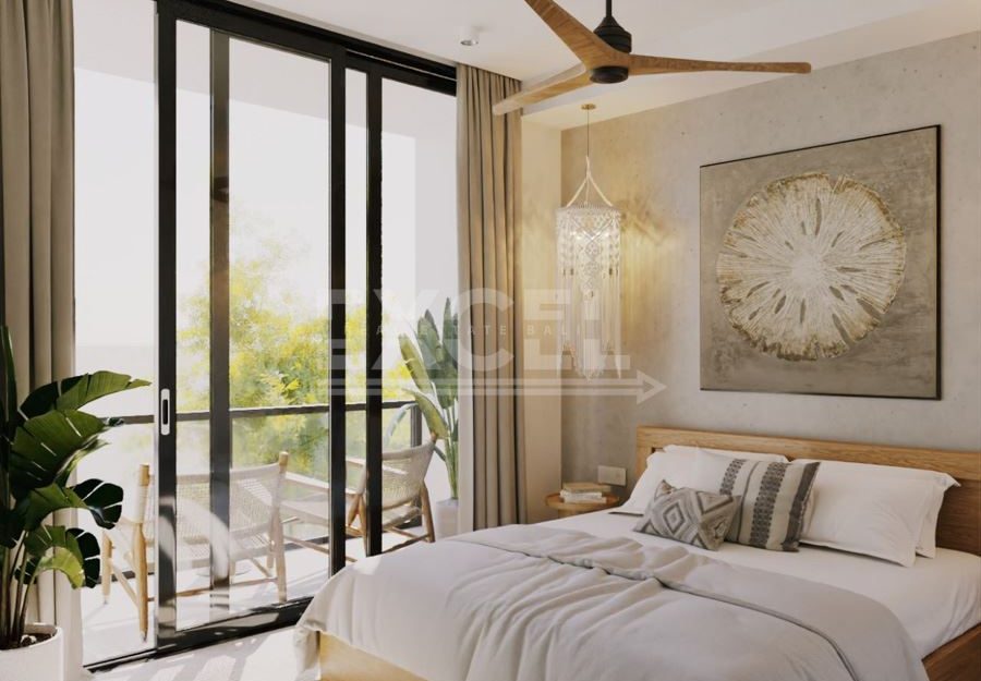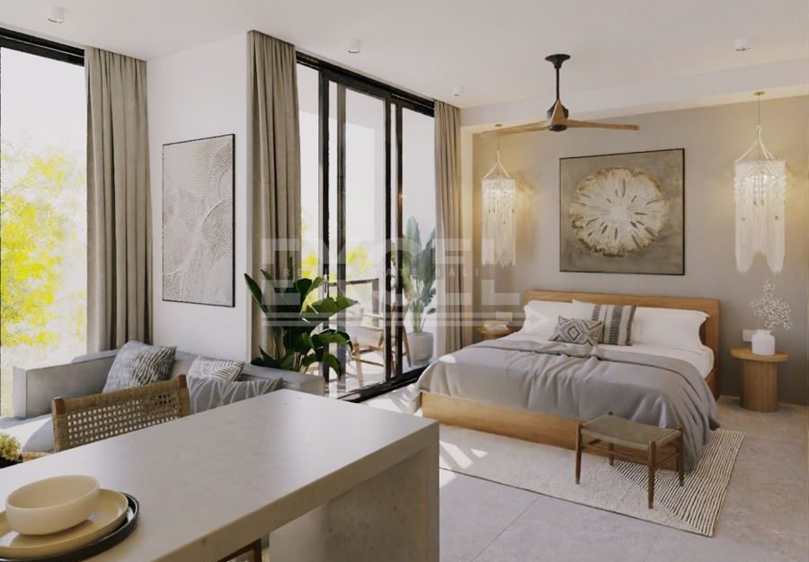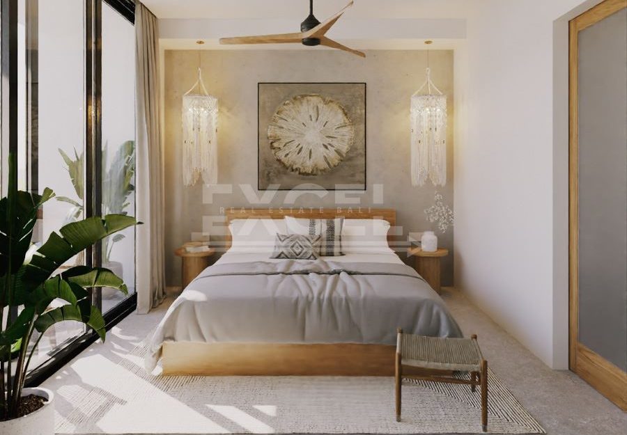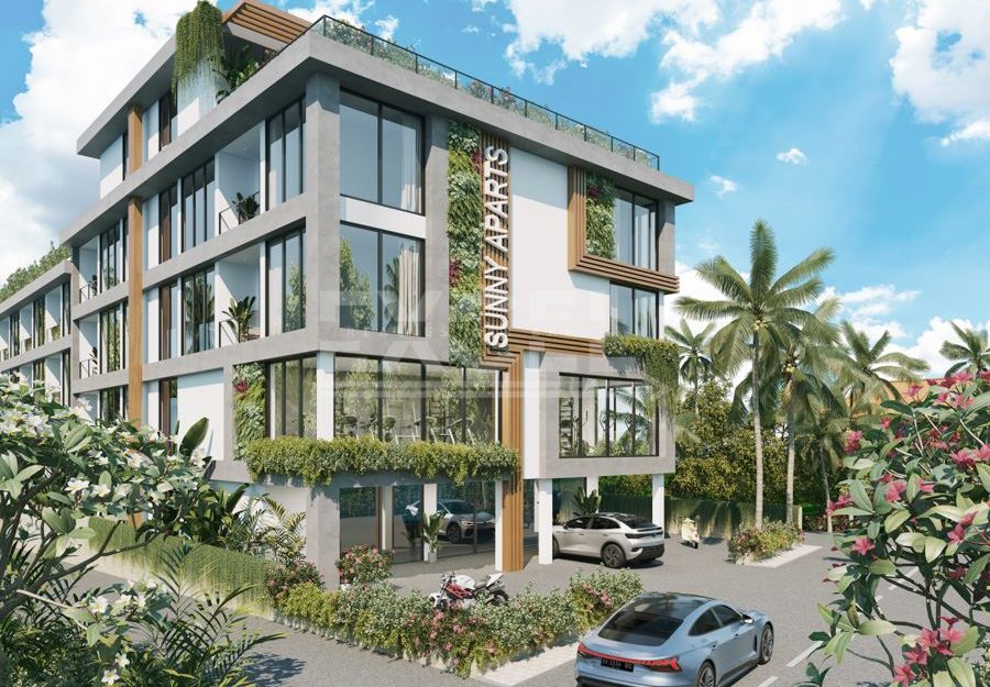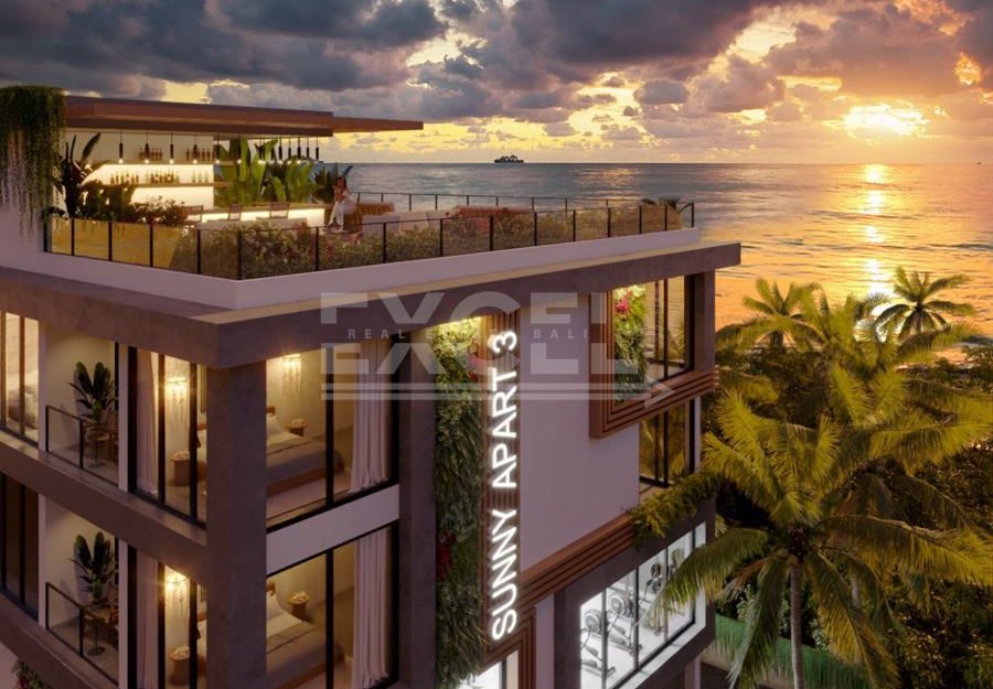 The apartment features modern finishes, stunning views, and a convenient location just minutes from Batu Bolong Beach.