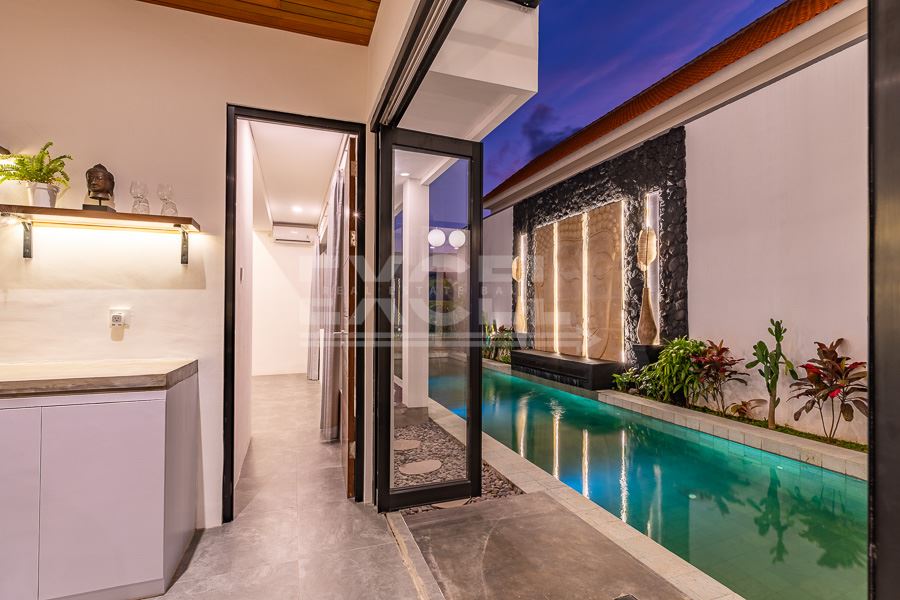 Discover a serene retreat in this stunning brand-new 2-bedroom villa nestled within the idyllic rice fields of Munggu, Canggu. This modern villa offers the perfect blend of comfort, style, and tranquility.