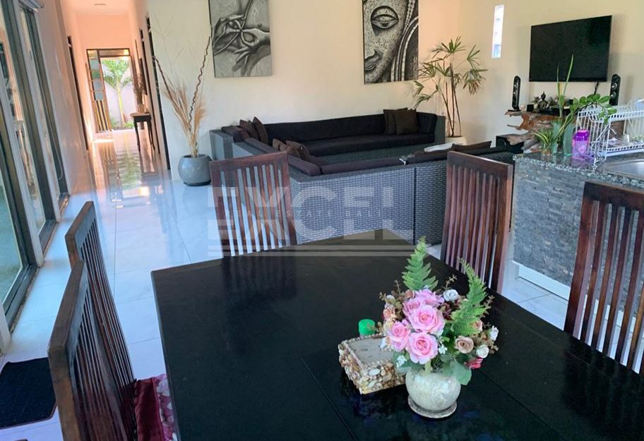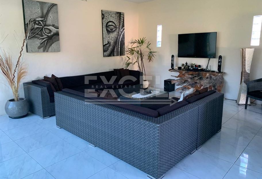 This villa comes fully furnished, ensuring your comfort and convenience from day one. With a closed living area, you can enjoy privacy and relaxation indoors.