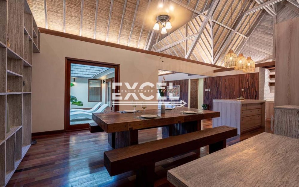 The property has a decent sized gated parking area for 2 cars, a service area, a large open planned fully equipped kitchen that is a great entertainment area, spacious dining area and a sunken comfortable living area that has views onto the lap swimming pool. There are 3 spacious en-suite bedrooms that all have a relaxing mezzanine area and within the garden you will find a spacious Bale that is another great spot to entertain guests. The property is completed with lush tropical gardens surrounding the property that blends into the unique design of this must see villa.