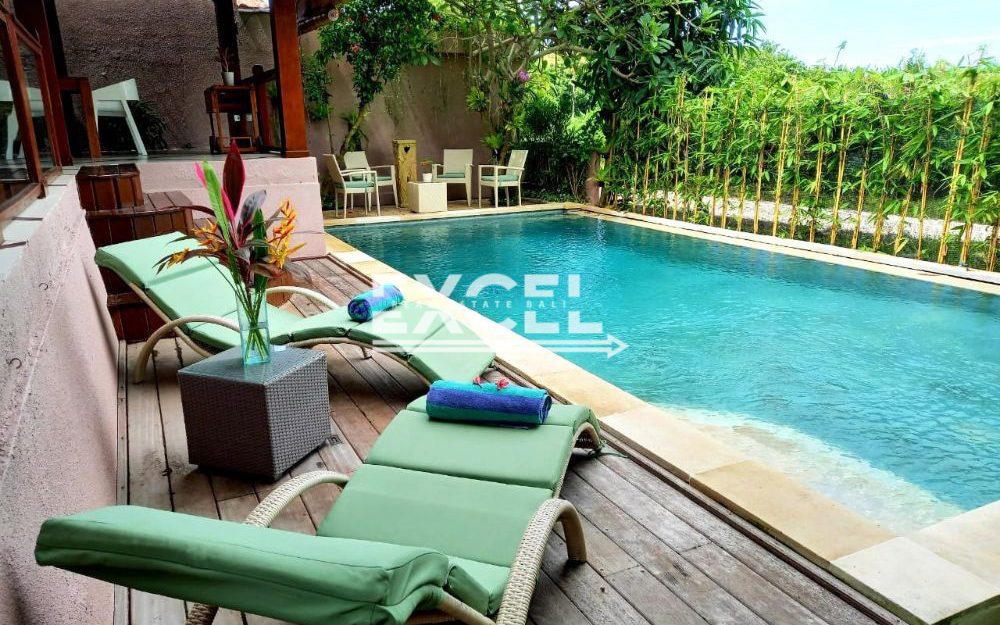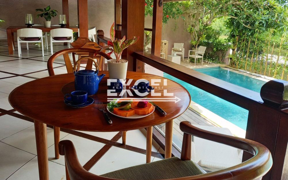 This charming three-levelled villa sitting on 545m2 land is a must see and will prove to be a very nice family residence or a villa that can generate rental income throughout the year. The property has a nice contour overlooking rice fields with a great morning views towards the distant volcanoes and glorious Sunsets.