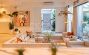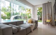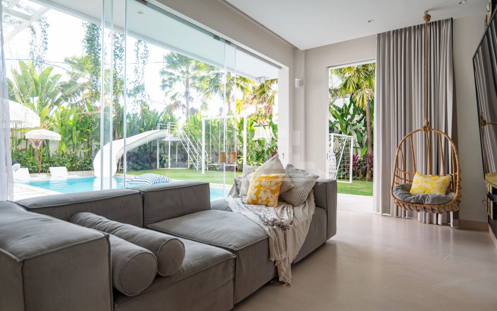 The villa is thoroughly designed with modern and contemporary details and decorations. Living spaces are ample and bright, with large windows allowing plenty of natural light. A decor blend of modern and classical styles and wooden elements creates an elegant and fashionable atmosphere surrounding the property.