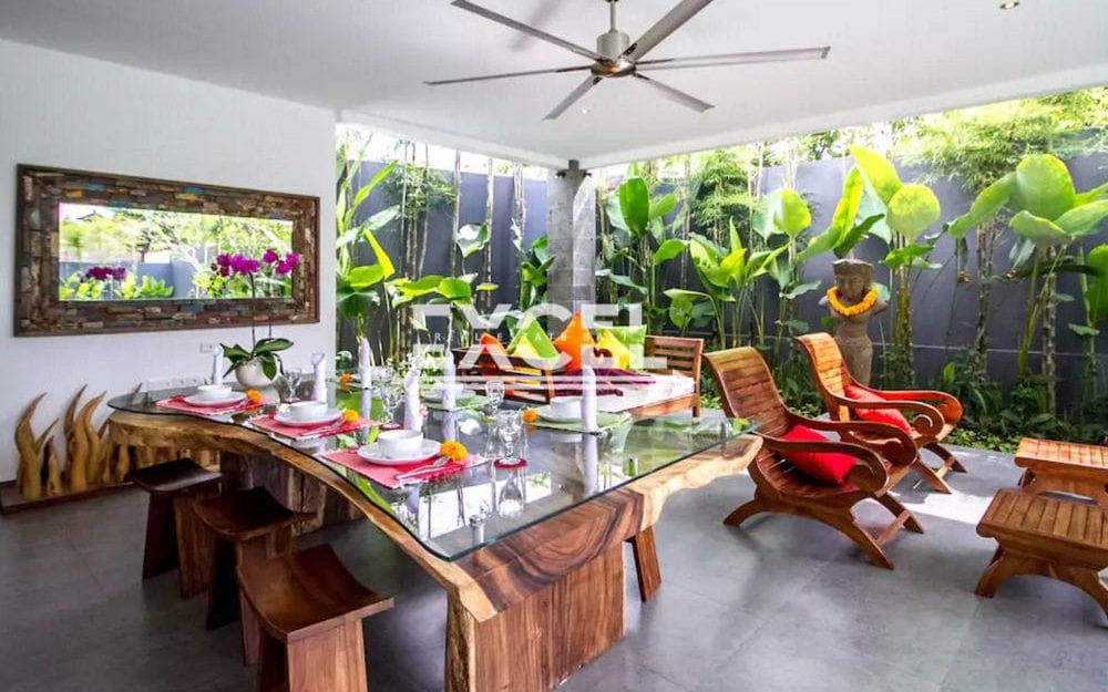 This Traditional/Contemporary style 3-Bedroom Villa is a very rare find in the central area of Petitenget near Sarong Restaurant, offering nice views around the area and to the mountains of Bali from its terrace.