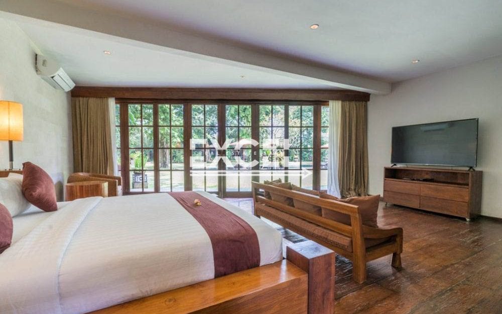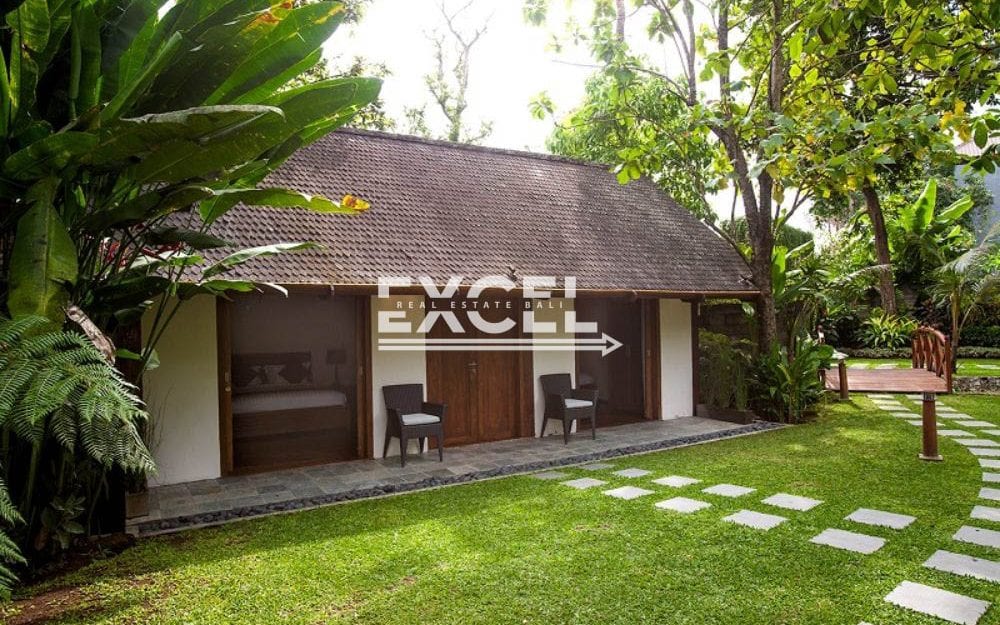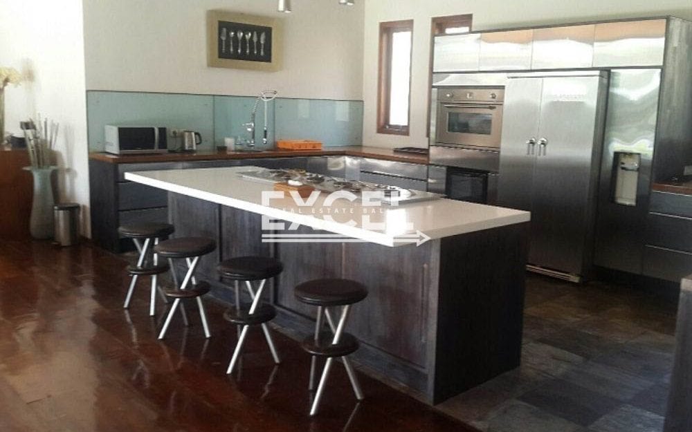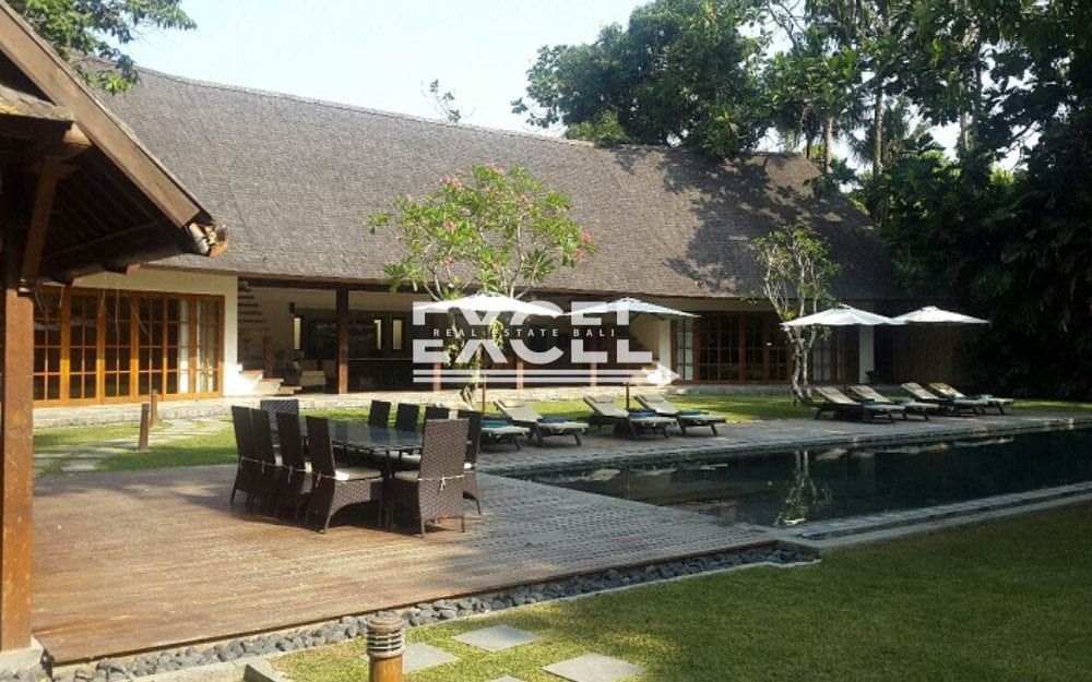 This magnificent property is a spacious 7-bedroom estate, set on 2800m2 of beautiful mature tropical gardens. Its unique architecture blends tropical architecture with contemporary design, using rare and traditional Indonesian materials. The villa offers a calming retreat where one can completely relax in comfortably appointed surroundings.