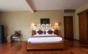 The property features 6 bedrooms and 1 media room (convertible to another bedroom), each with en suite bathroom. Three bedroom suites and the media room are located in the main house. One master bedroom is found in the private guest house while 2 additional bedrooms are located in the family guest house (complete with a fully equipped kitchen connected to a dining pavilion with a spacious living area).
