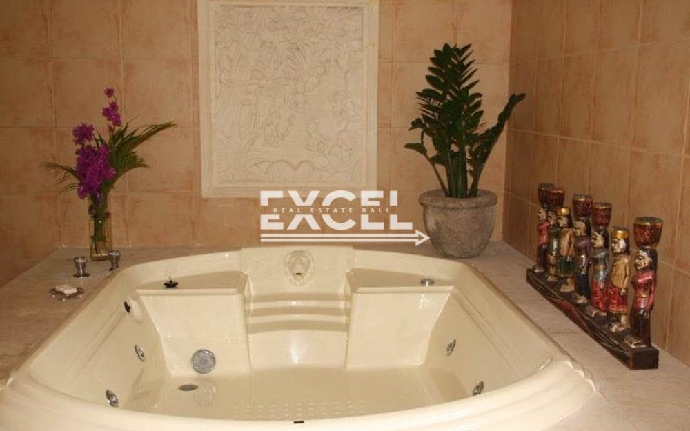 All the bedrooms are very spacious with views of the Jimbaran Bay and the airport which can be seen from the second floor. This property is located in a quiet gang, with a road access of 5 meters. The villa is surrounded by other prestige properties in a very safe area. Just 100 meters from the main street and you can reach the airport in a 10 -15 minute drive.