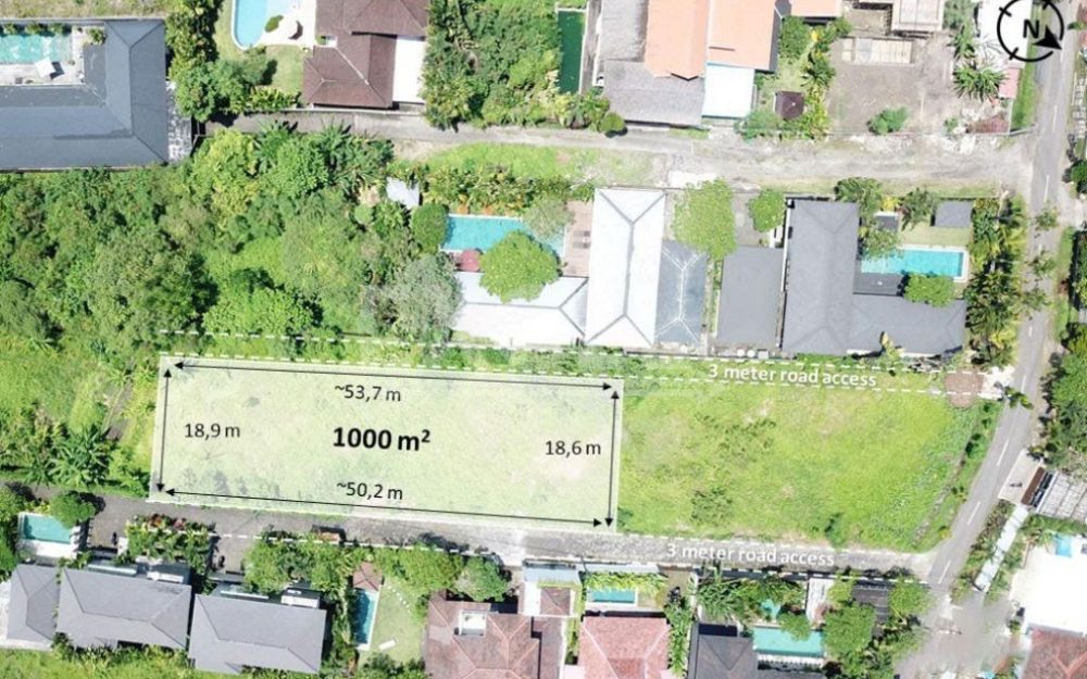 This 1000m2 of land is located in the peaceful residential area of North Canggu / Babakan, is a perfect spot to develop a private residence. Around 15 minute drive will take you to the famous areas of Batu Bolong and Echo Beach that offers a wide range of restaurants, shops and of course a number of beach club venues. International schools are also within easy reach.