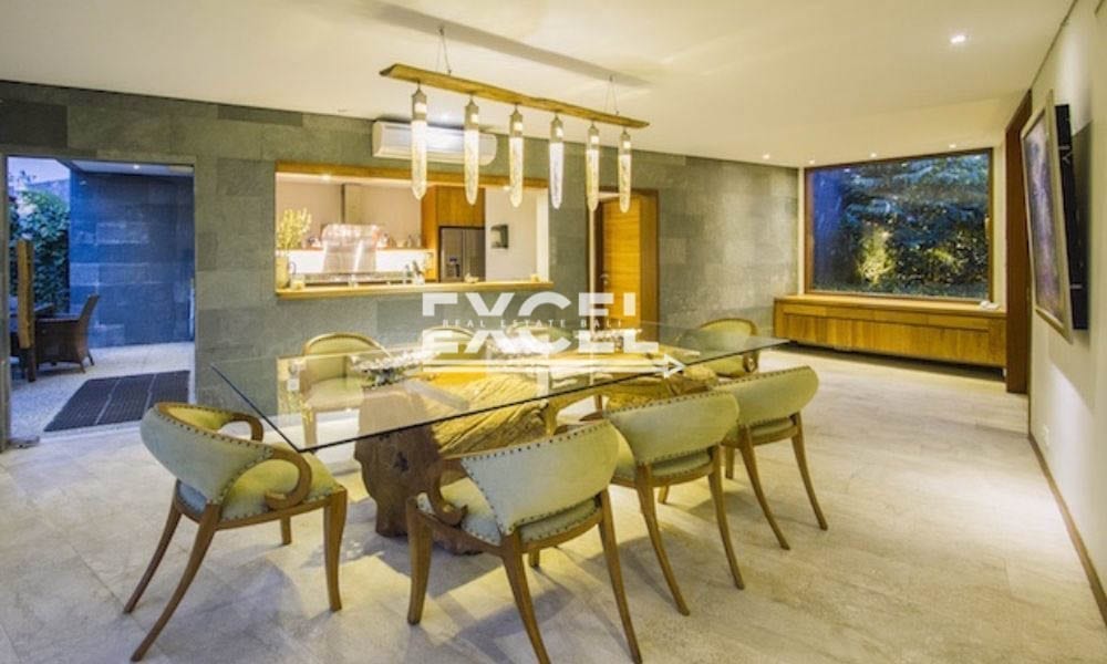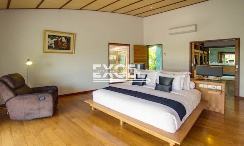 The property boasts 5 spacious and luxurious private bedroom suites with the master bedroom offering it’s own office space, walk-in wardrobe and private roof deck where one can enjoy the picturesque scenery and cooling breeze. Further features include multiple lounge spaces, a top quality kitchen, large indoor and outdoor dining spaces and a fitness room while elsewhere the private swimming pool is complimented by a poolside bar and lounge – an ideal space for entertaining friends and loved ones with views over the expansive tropical gardens.