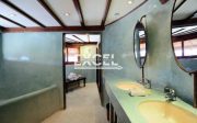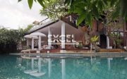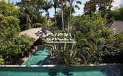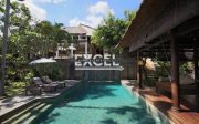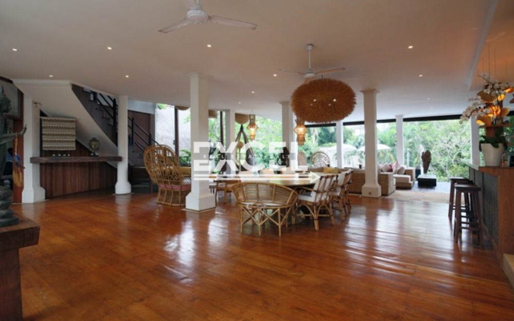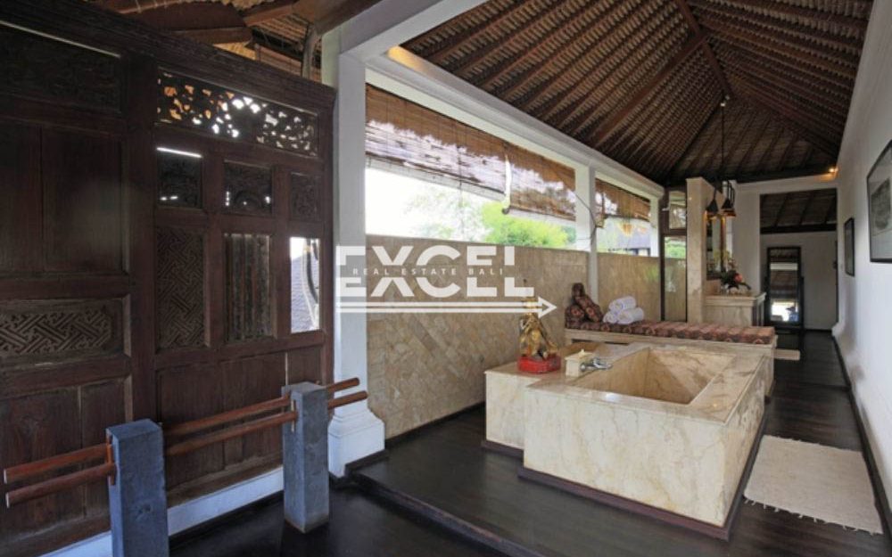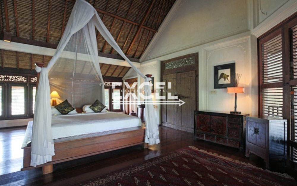 On the second teak-wood floor, the superb master bedroom has its king size bed viewing the rice paddies through the windowed partition separating the balcony with the room. The master en-suite bathroom features a bathtub and two separate showers for maximum convenience. On the same floor, another area has been renovated, featuring a game room for children and two bedrooms sharing the same bathroom. On the lower stage, the water from the swimming pool above falls into the second 60m2 pool. Beside the swimming pool is the entertainment area, including sofas, couches and a pool table to give you time for true relaxation. Furthermore, there are two bedrooms with their en-suite bathrooms in a separate building, surrounded by the verdant garden and fish pond.