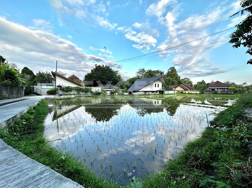 Nestled in the serene heart of Sayan, this villa is part of a private and tranquil retreat of 2 villas set on an expansive 1100 sqm plot, which can be bought together or separately. Each villa is on a plot of 550 sqm land. This unique property boasts a picturesque location beside a river, complemented by sweeping views of lush rice paddies. Each villa is distinct, featuring its own set of amenities including private pools, wells, and independent PLN connections for uninterrupted power.