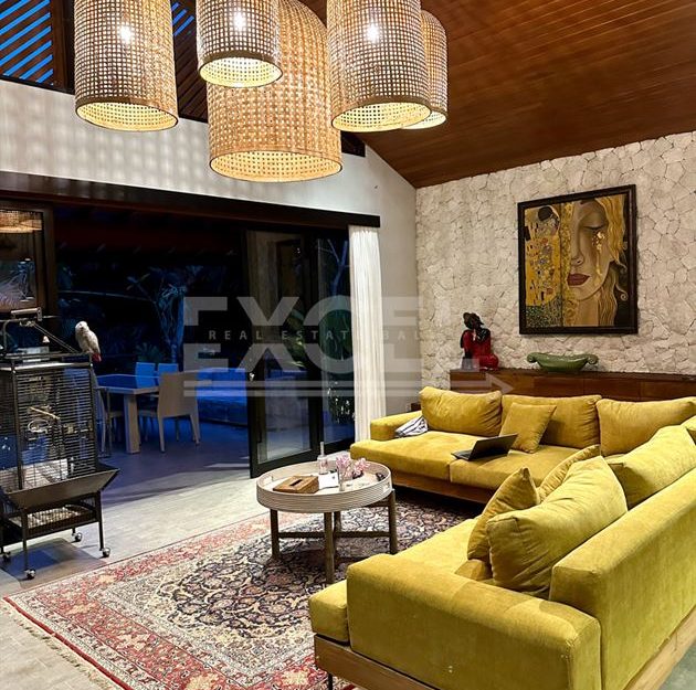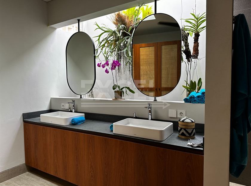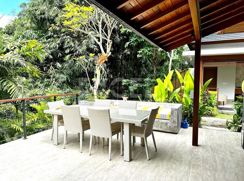 Nestled in the serene heart of Sayan, this villa is part of a private and tranquil retreat of 2 villas set on an expansive 1100 sqm plot, which can be bought together or separately. Each villa is on a plot of 550 sqm land. This unique property boasts a picturesque location beside a river, complemented by sweeping views of lush rice paddies. Each villa is distinct, featuring its own set of amenities including private pools, wells, and independent PLN connections for uninterrupted power.