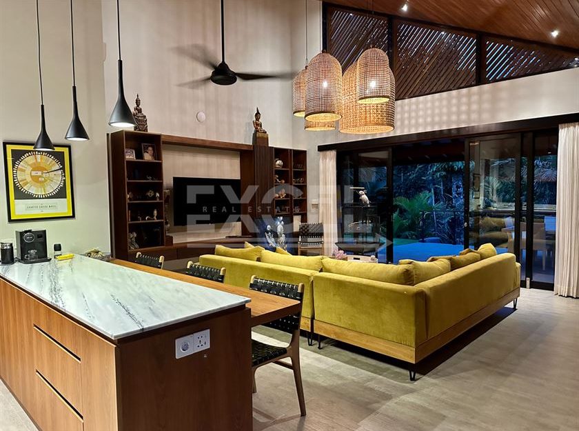 Villa No 1 with a building size of approx. 250m2 is thoughtfully designed with seamless indoor-outdoor living in mind. The master bedroom (AC), complete with ensuite, and lots of wardrobe space, adjoins the living room (AC), offering easy access and comfort. The open-plan kitchen is equipped with a generous cold pantry, ideal for wine and food storage. A separate second bedroom features its own ensuite and offers a river view and a small kitchenette, providing privacy outdoor lounge area convenience for guests.