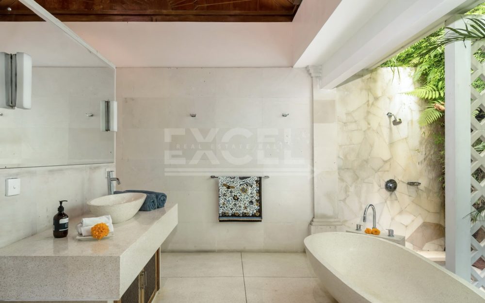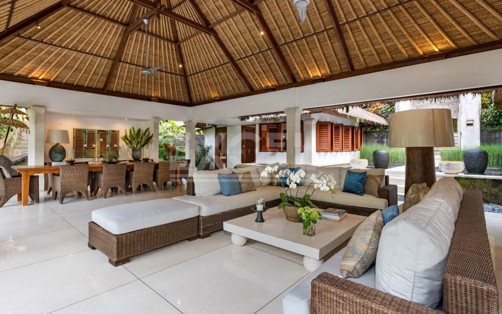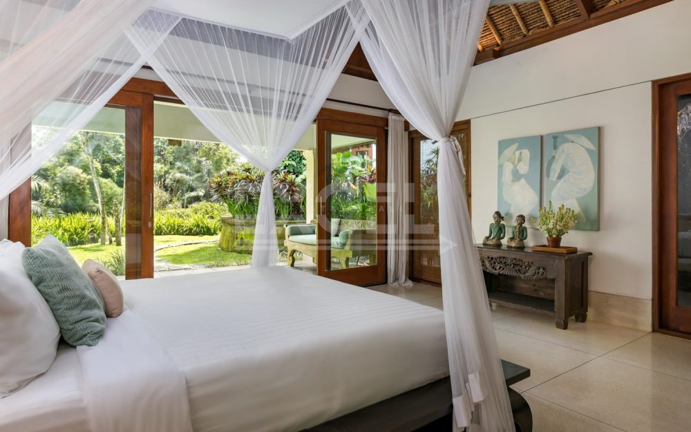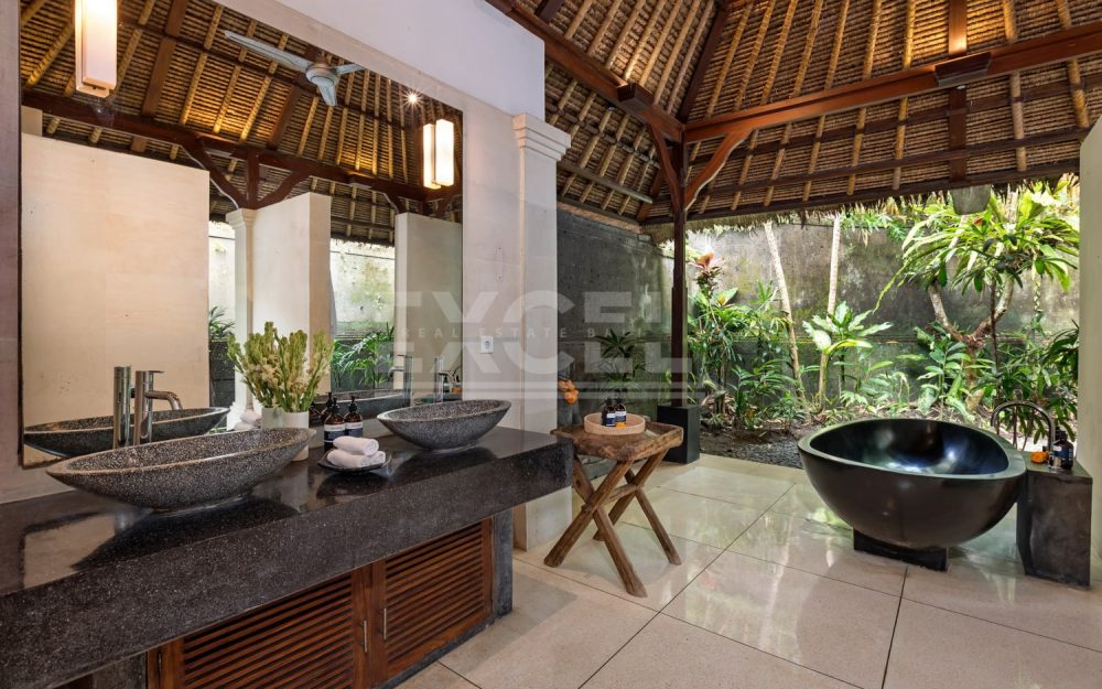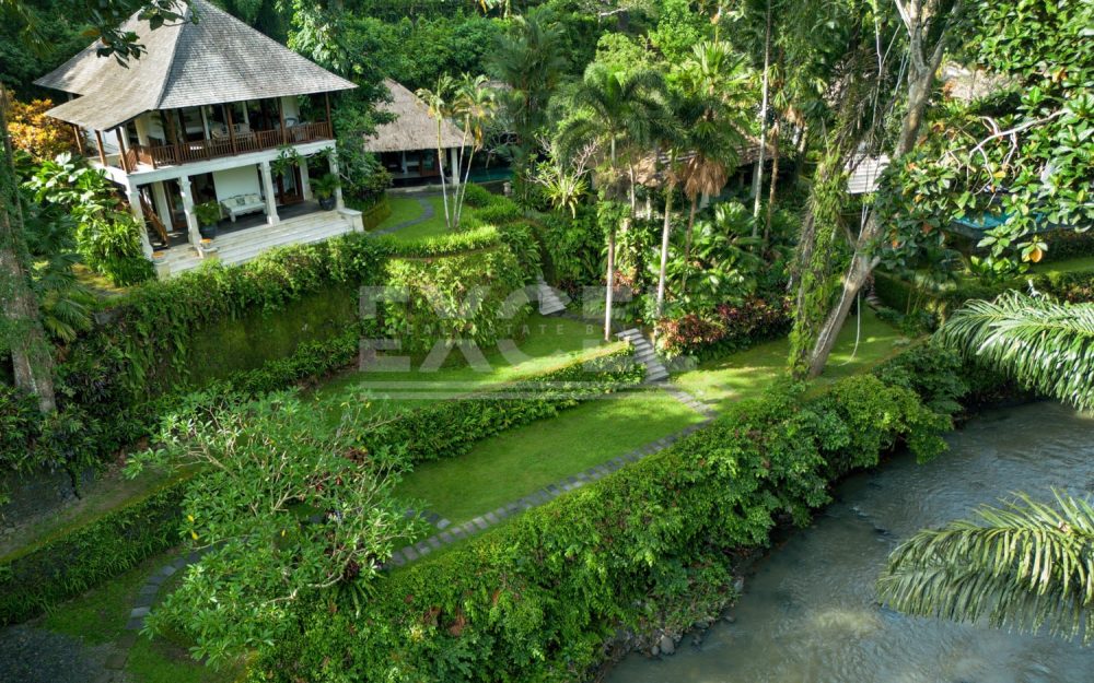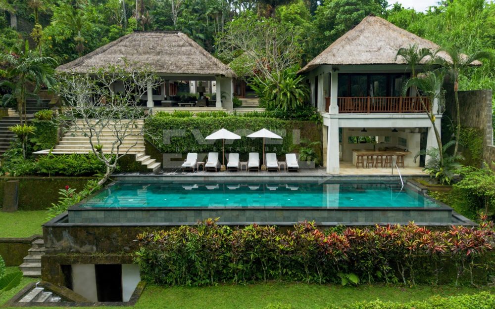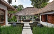 The property is a secluded oasis couched in the Balinese Jungle measuring 8515m2 of beautifully curated gardens and within easy reach to the popular area of Canggu. The villa itself is a refined and elegant space, specially designed for those seeking some timely rest and relaxation. Within the gardens you’ll find two pools, and a riverside spa, gym and even a poolside bar.