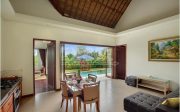 Blending traditional and modern Balinese design, each villa is air-conditioned and equipped with premium amenities, including flat-screen TVs, wardrobes, and personal safes. Select villas also feature seating and dining areas, along with fully equipped kitchens that include dishwashers, ovens, electric kettles, minibars, and toasters. Private bathrooms offer both bathtubs and showers for ultimate relaxation.