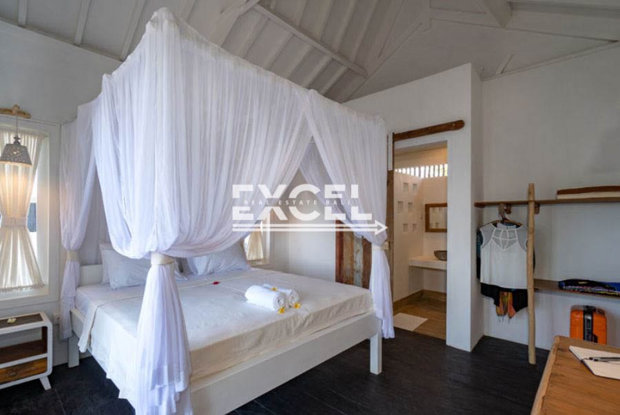 The Unique Bungalows are made of timber and refurbished woods, combining all-white aesthetic for the interior and exterior with recycled driftwood, and Balinese carvings in the details, while keeping the overall chill beach vibe. Each room is Air- Conditioned, fitted with wooden flooring and seating area, with private showers.