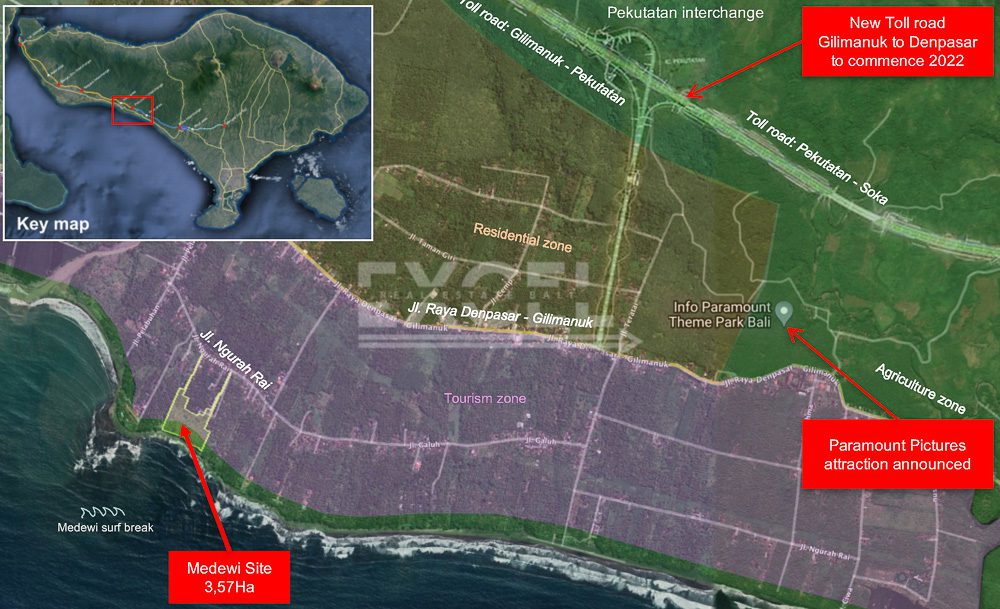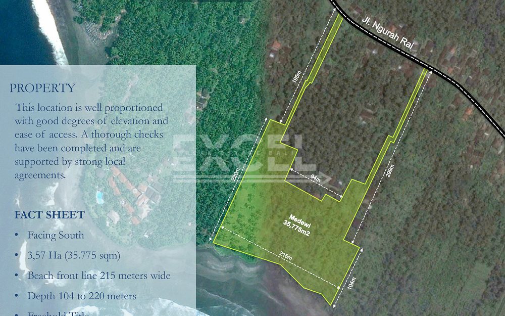 This prime beach front land investment opportunity has massive potential for capital appreciation and will also accommodate a perfect spot for hotel or resort development. The land is well proportioned with a good degrees of elevation and ease of access. Located in popular area of Medewi that boast one of Bali’s top surf spots and accompanied by breathtaking views and a glorious beach.
