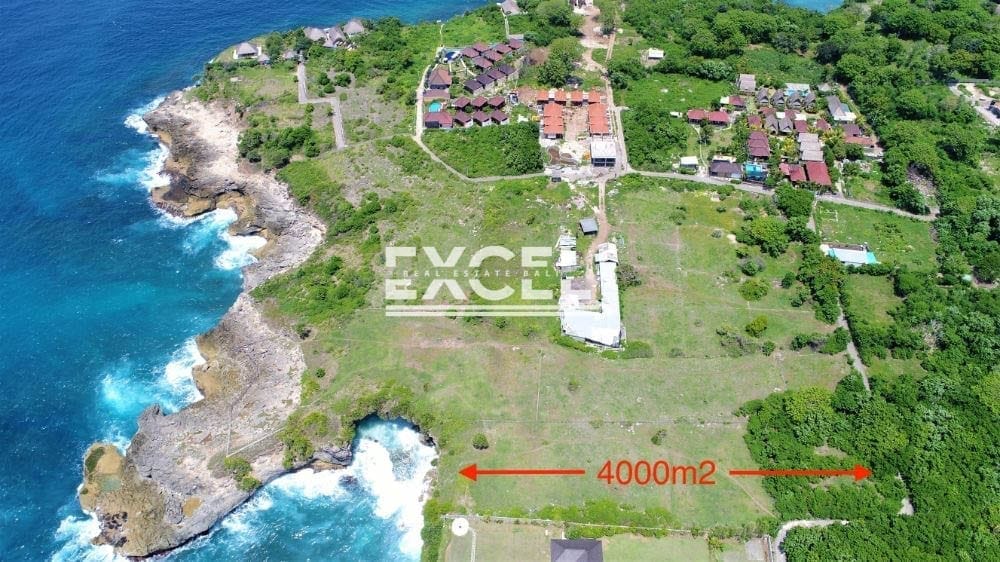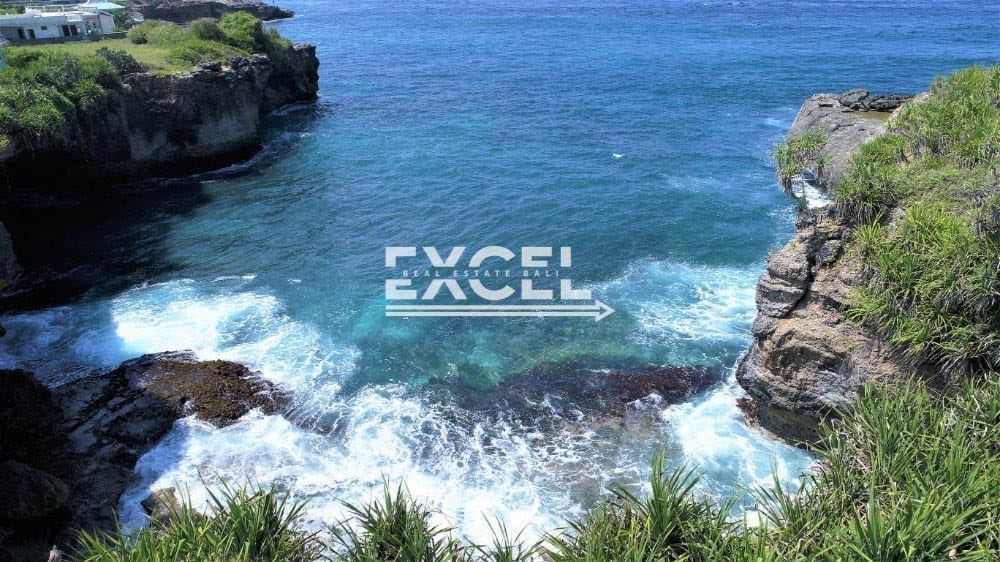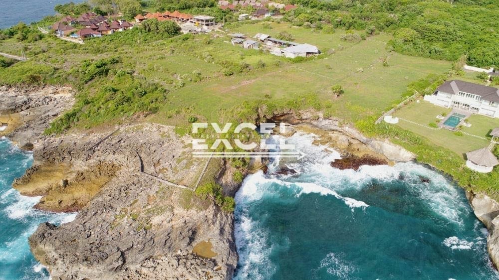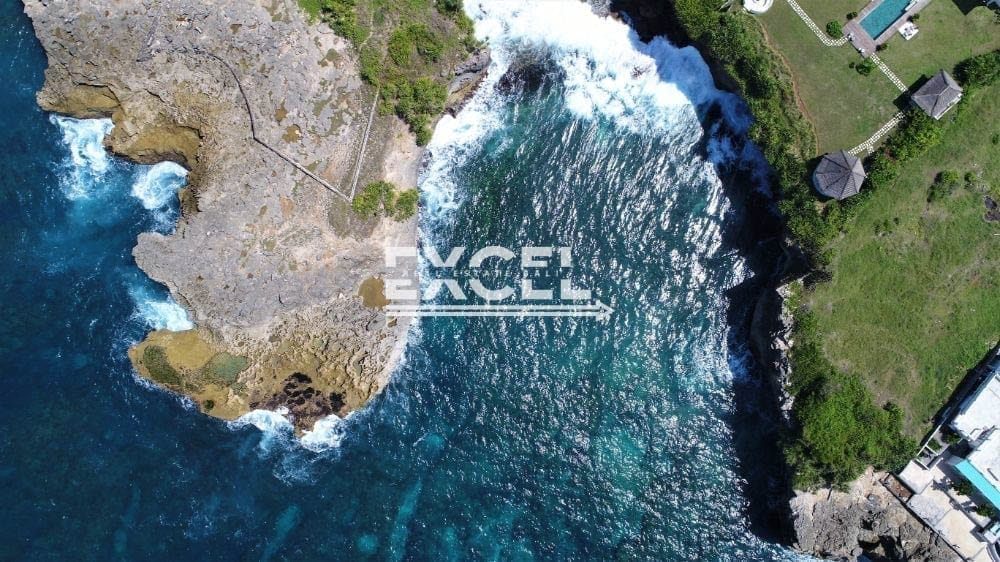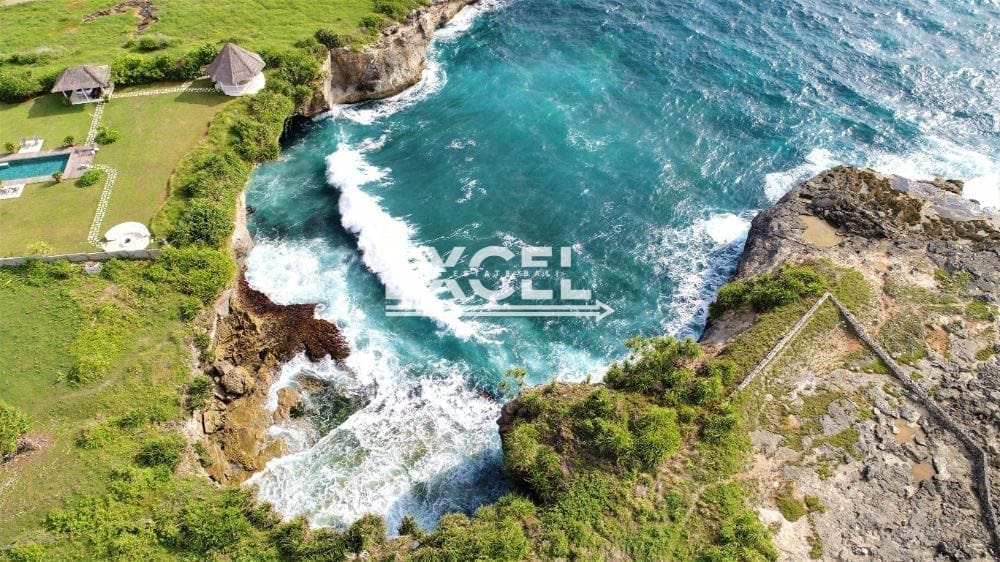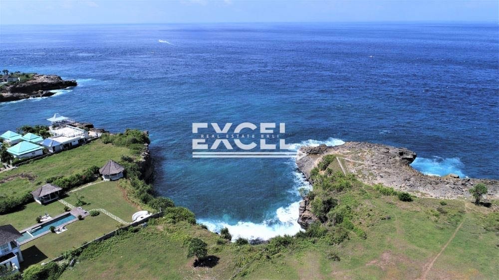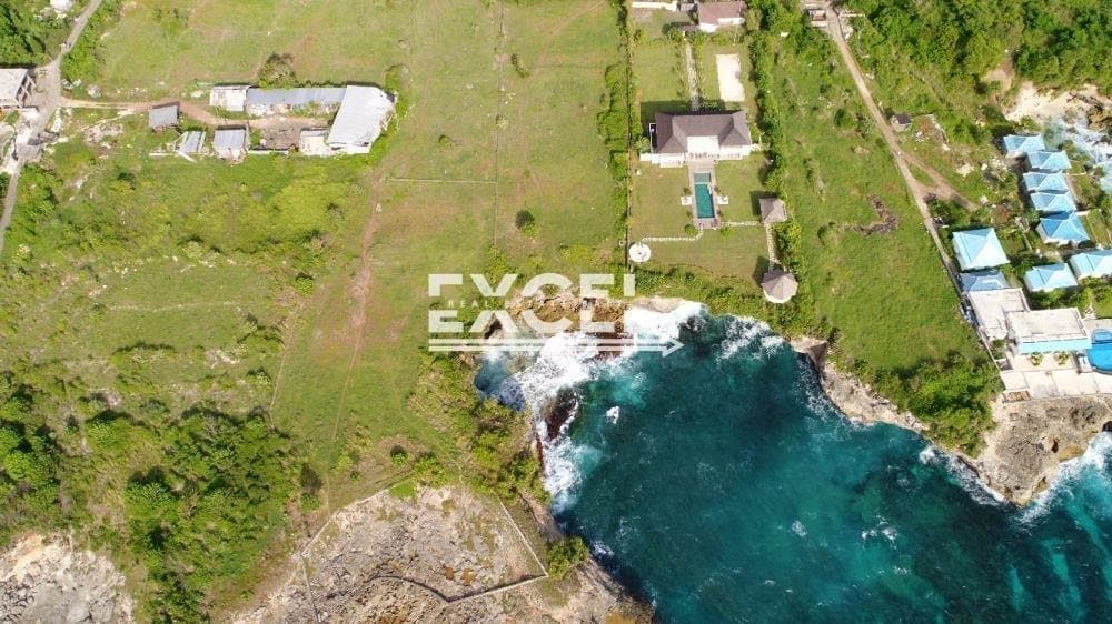 Great development site for a number of options. 5545m2 vacant lot directly adjacent also cliff front available to purchase making a huge 9545m2 in total opening up a range of additional building/development options. With both plots combined pretty much all of the cove cliff edge would be at the owners disposal. One of Nusa Lembongan’s finest 2 level luxury villas set amongst sprawling grounds/gardens already in place next door and this particular lot would be ideal for something along the same lines.