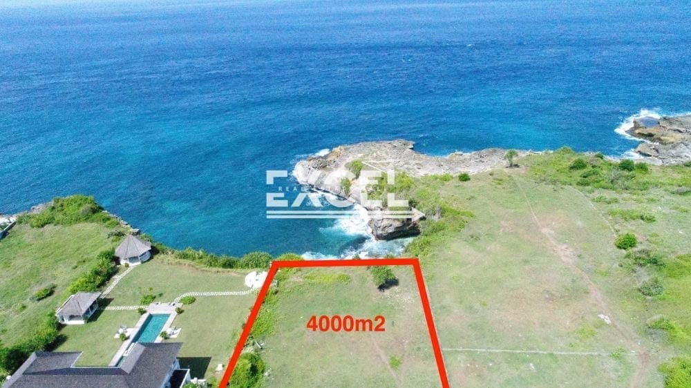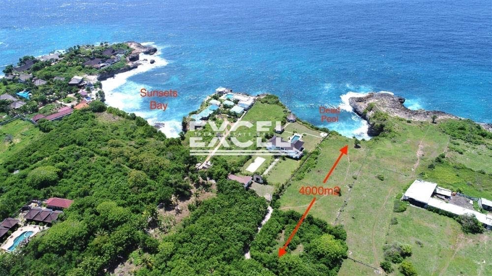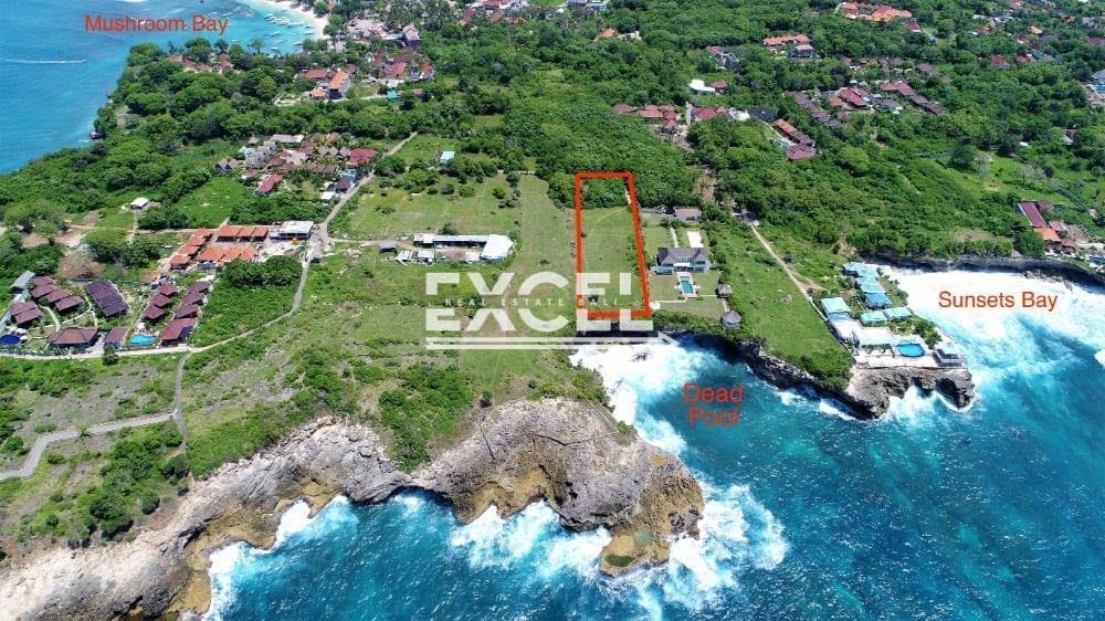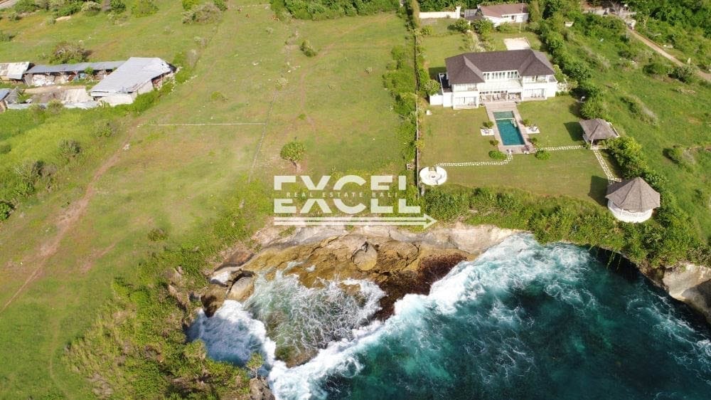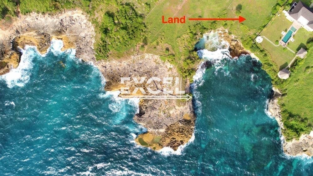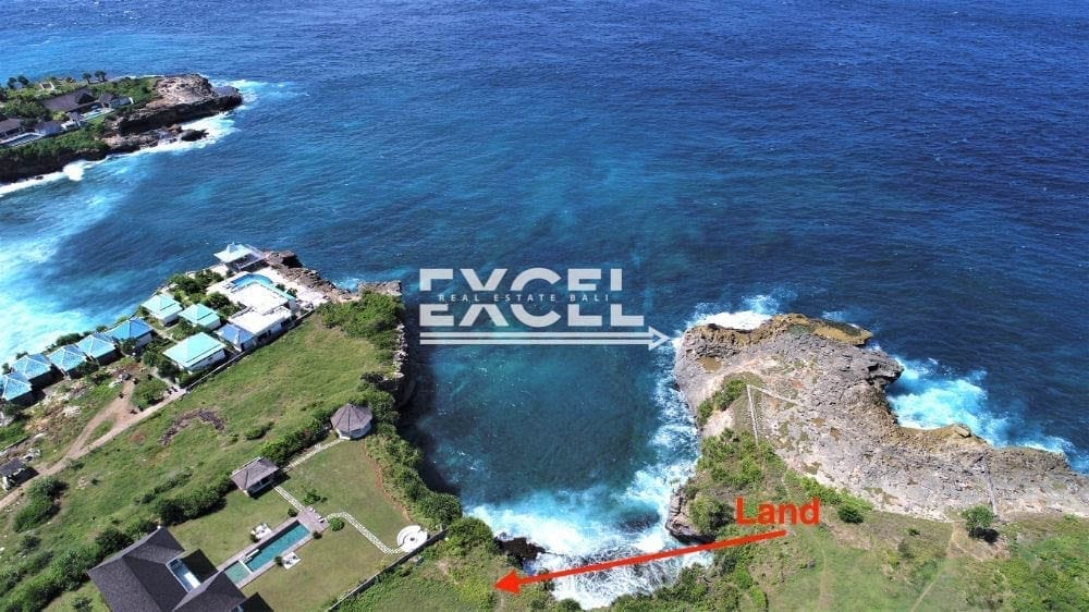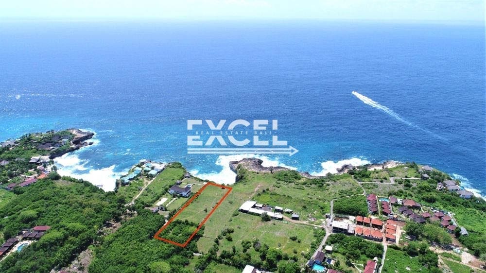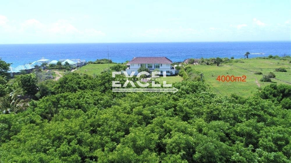 Great development site for a number of options. 5545m2 vacant lot directly adjacent also cliff front available to purchase making a huge 9545m2 in total opening up a range of additional building/development options. With both plots combined pretty much all of the cove cliff edge would be at the owners disposal. One of Nusa Lembongan’s finest 2 level luxury villas set amongst sprawling grounds/gardens already in place next door and this particular lot would be ideal for something along the same lines.