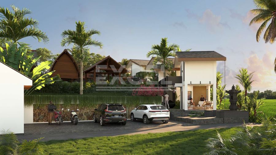 Nestled in an authentic Balinese village, the villas are just a 10-15 minute drive from the bustling center of Ubud. The location boasts breathtaking panoramic views of lush rice fields and offers easy access to both southern and eastern Bali and the airport. A brief one-minute stroll leads to a scenic rice field walk, perfect for connecting with the serene local landscape and historical sights.