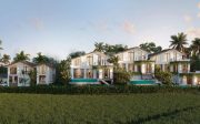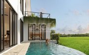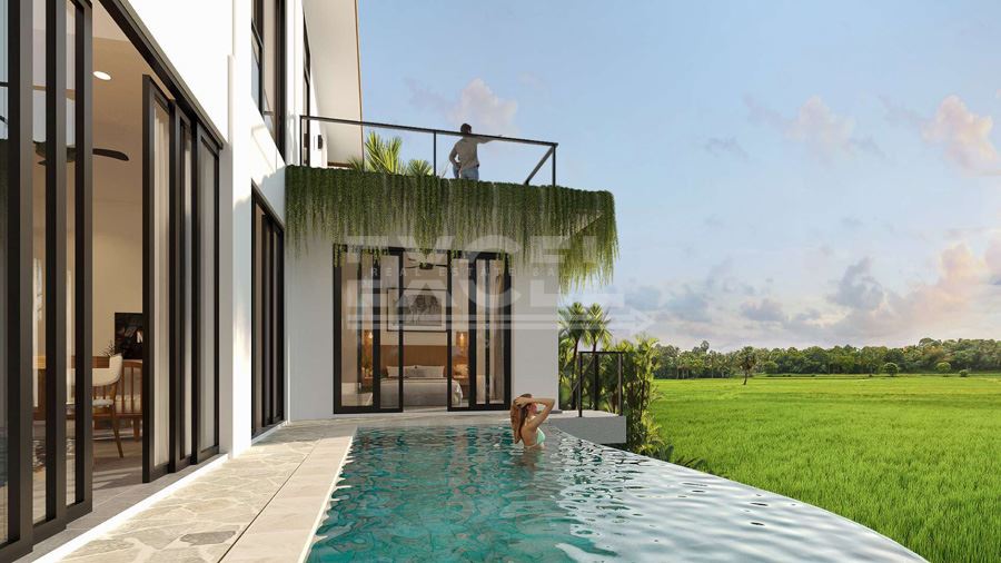 Each villa boasts a private infinity pool overlooking vibrant rice paddies, offering an immersive experience of peace and natural beauty.